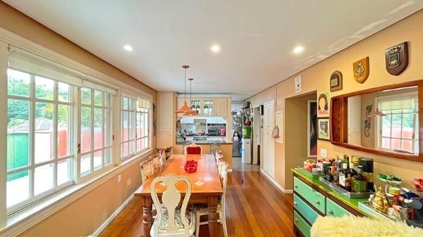 Casa em condomínio de alto padrão, localizada em um bairro nobre, com 322m² de área privativa. O imóvel oferece 03 dormitórios, com possibilidade de adicionar mais um, incluindo uma suíte master. O living é amplo, com lareira, distribuído em 03 ambientes e possui sacada com churrasqueira. Além disso, há uma área de estar para 02 ambientes, sala de jantar para 02 ambientes integrada à cozinha americana, dependência de empregada, lavanderia, e espaço para sótão. O pátio conta com 04 vagas de garagem, sendo 02 cobertas na frente e 02 fechadas. O condomínio oferece infraestrutura completa, com salão de festas, academia e piscina. Agende sua visita.