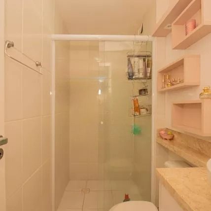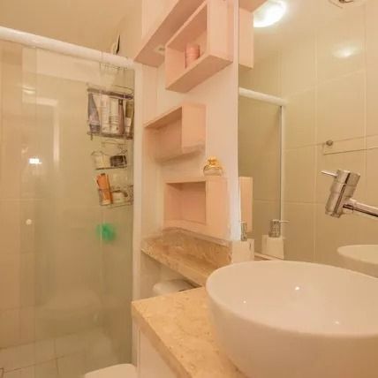 2 dormitórios com privacidade, 1 sendo 1 suíte, com móveis planejados em ambos. Cozinha estilo americana planejada e 2 banheiros.