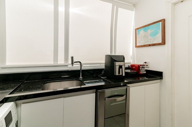 - Cozinha americana planejada, com móveis sob medida e eletrodomésticos Brastemp – linha Gourmand (cooktop, forno embutido e geladeira duplex)