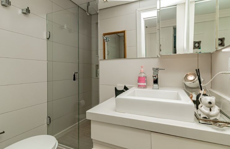 - Gabinete funcional, elegante para home office e com banheiro exclusivo