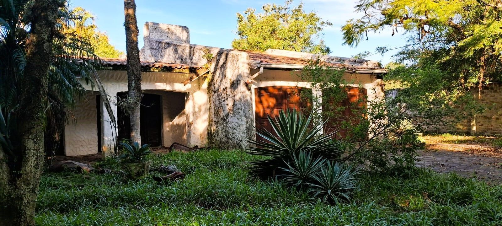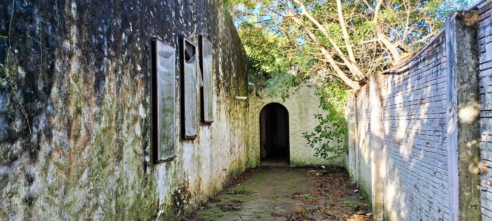 Existe uma ampla residência térrea em cima, com praticamente 300 m² e piscina. Construída nos anos 70 precisa bastante reforma, mas tem linhas arquitetônicas muito bonitas. Potencial para se transformar novamente em uma linda moradia e composta de suíte master com lareira, 2 dormitórios de solteiro, banheiro social, living para dois ambientes também com lareira, lavabo, copa cozinha, dependência de empregada, banheiro auxiliar e despensa.