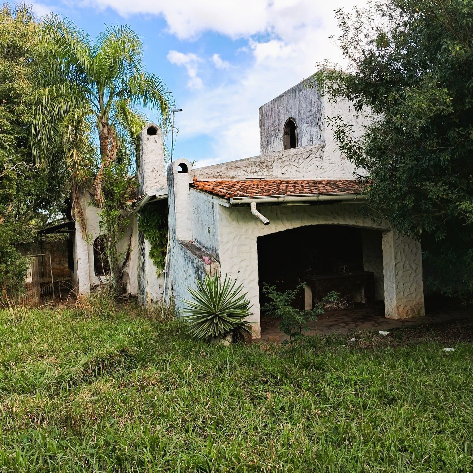 Terreno todo cercado com muros de tijolos e grades de ferro.