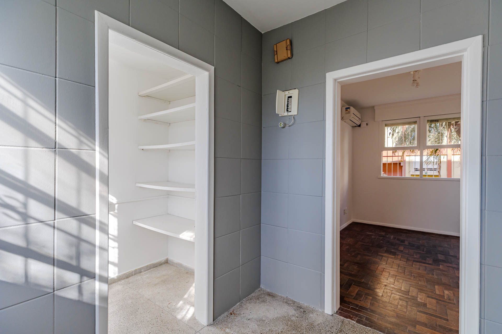 Apartamento térreo todo reformado e pintado, bem iluminado com orientação solar norte e ventilação cruzada, com 2 dormitórios, banheiro com armário e box, cozinha com armários, área de serviço grande separada da cozinha e com despensa/depósito, piso em parquet na sala e dormitório. ficam 2 aparelhos de ar condicionado split e luminárias.