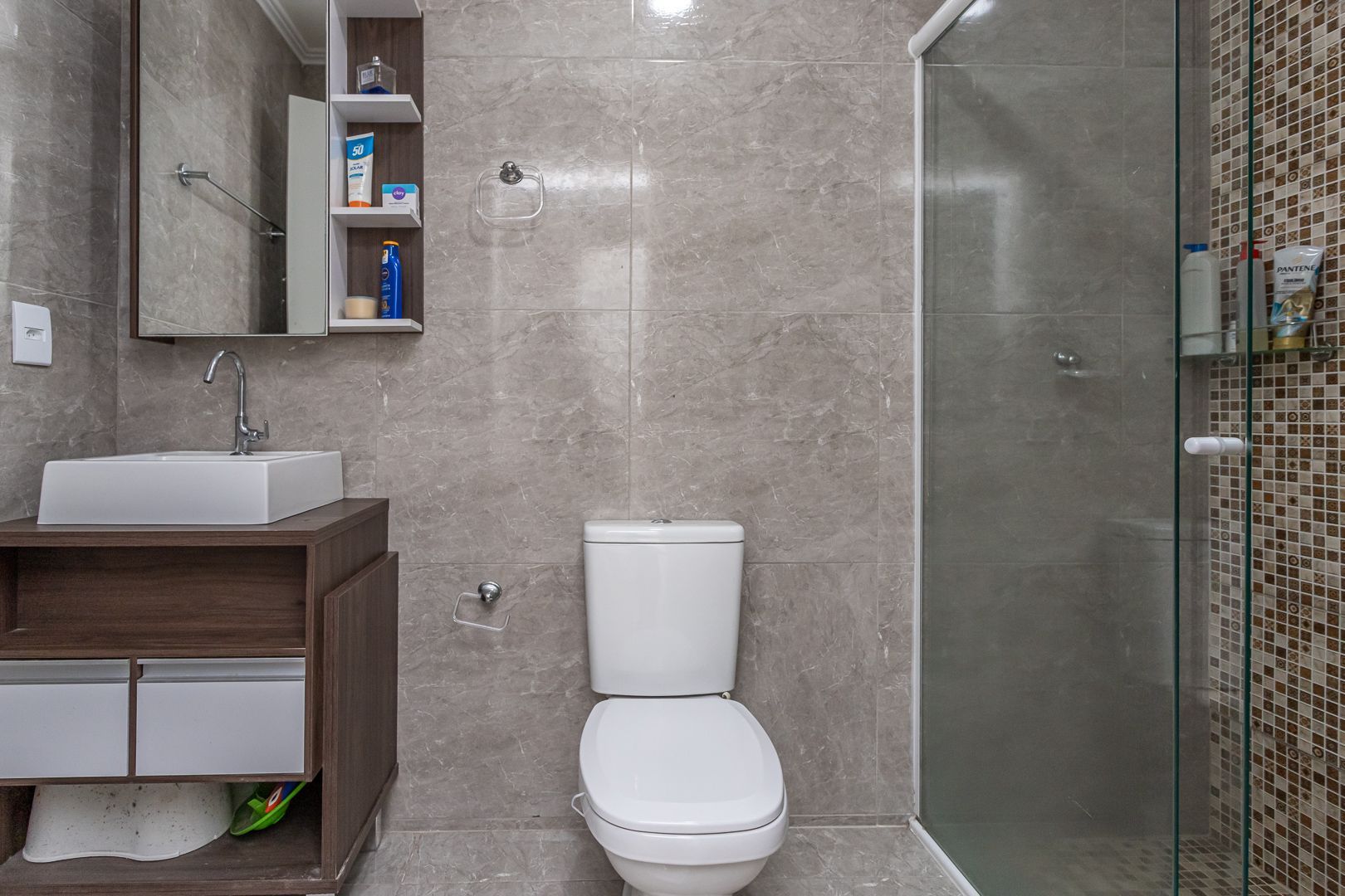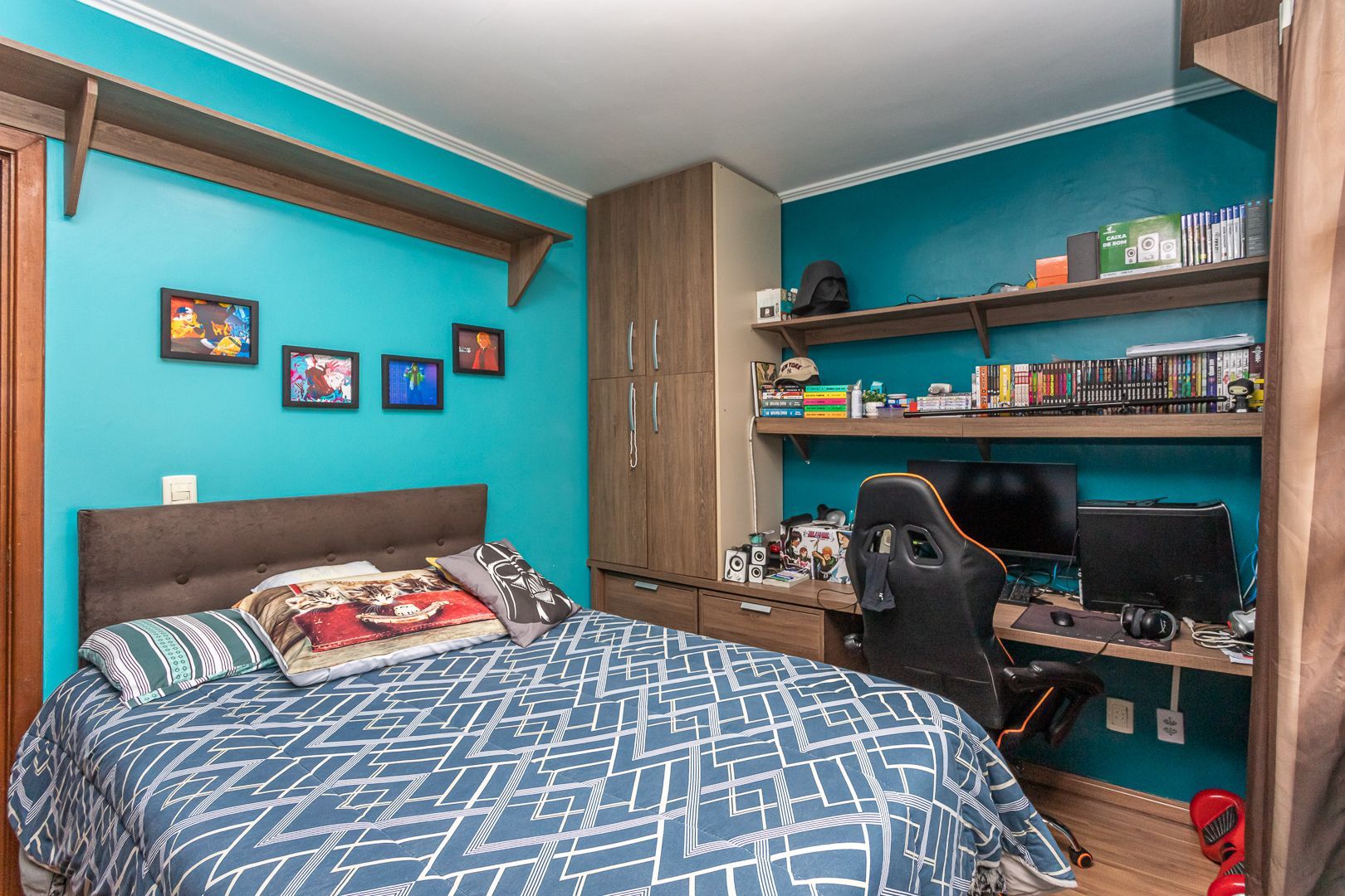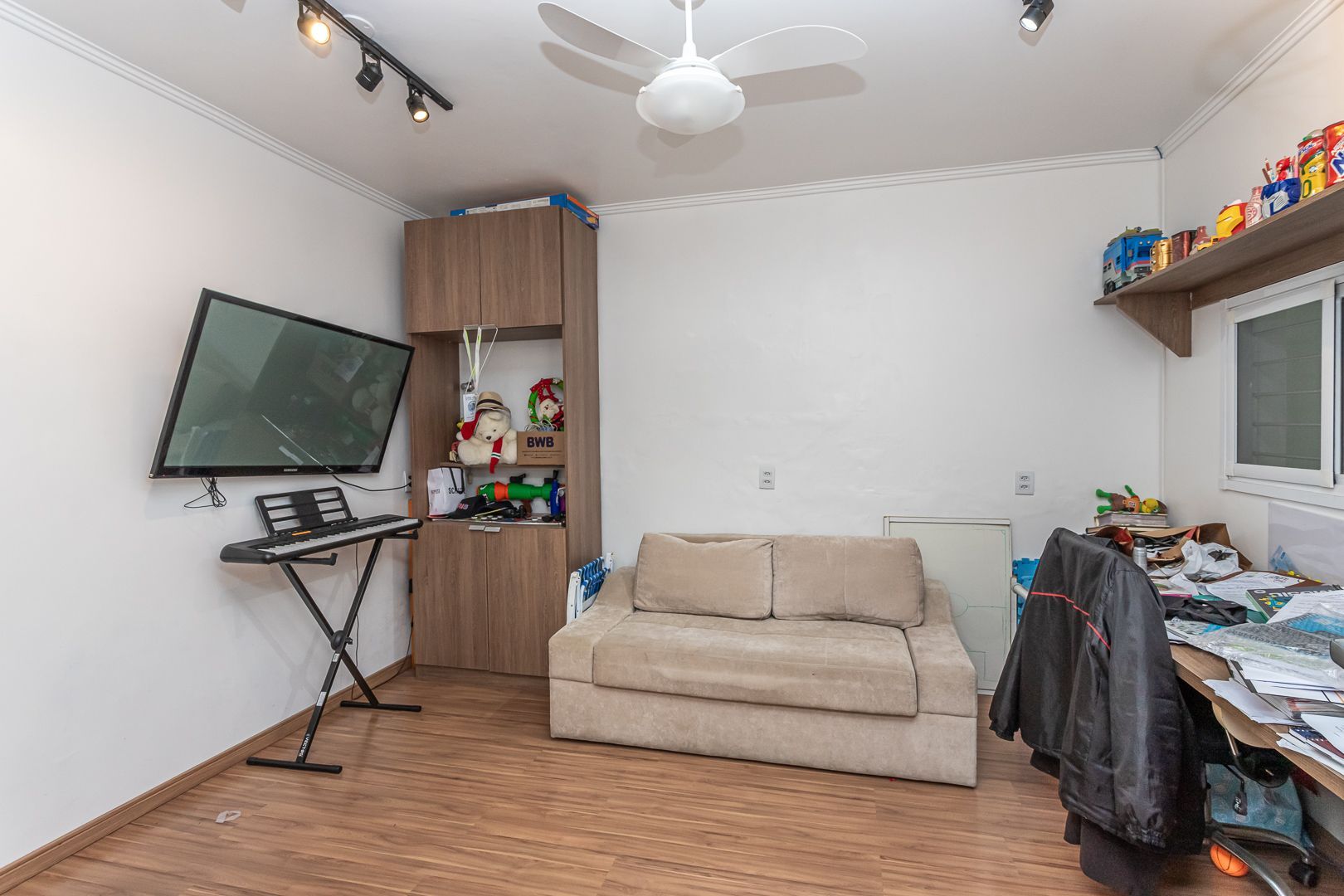 No pavimento superior, são 3 dormitórios, sendo 1 suíte com sacada, além de banheiro social.