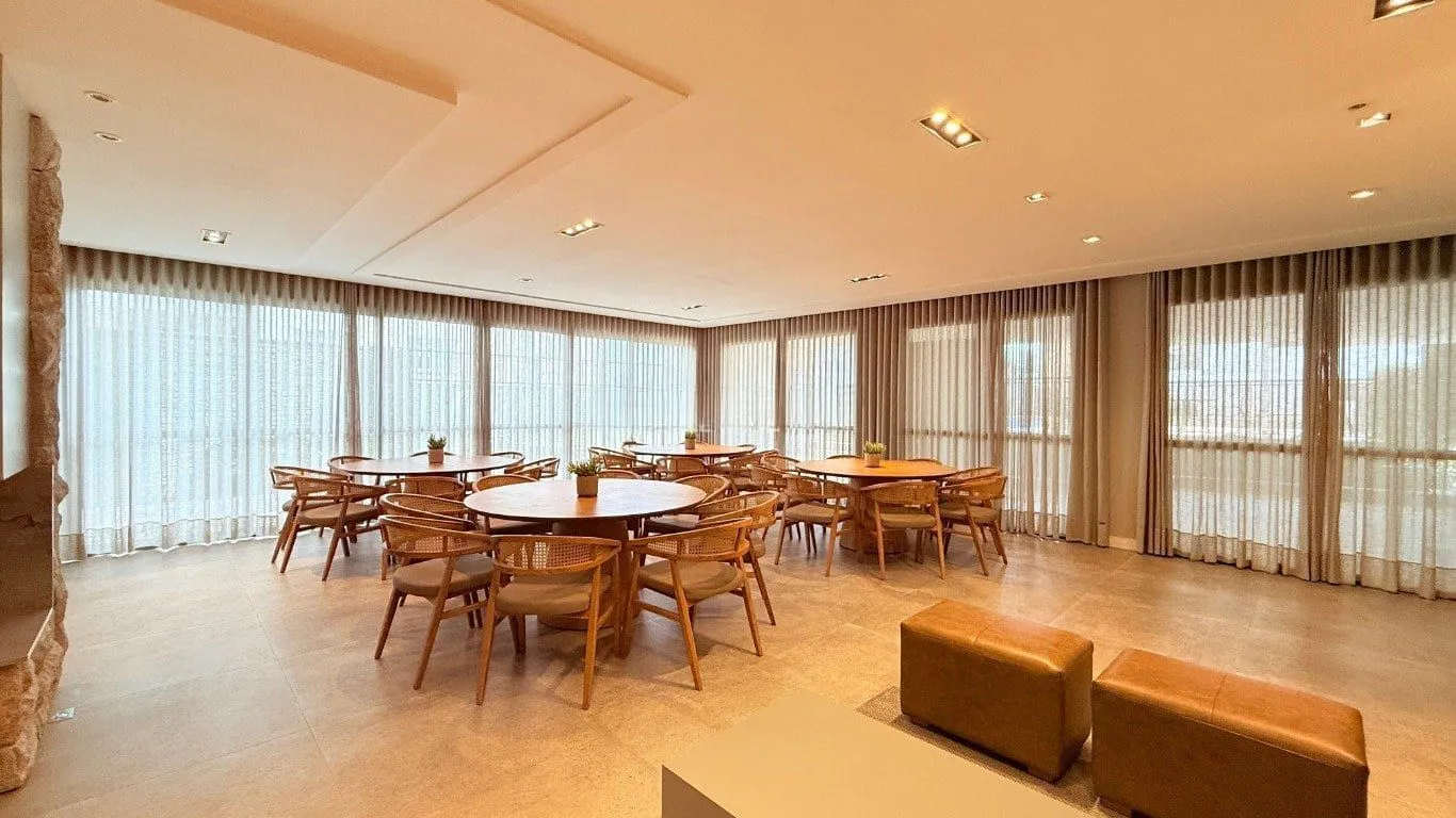 O condomínio apresenta uma infraestrutura completa, com recursos que garantem lazer e segurança: piscina, quadra esportiva, espaço fitness, salão de festas, sala de jogos, playground, quiosque com churrasqueira, além de portaria 24 horas, monitoramento por câmeras, sistema de alarme, elevadores e áreas verdes bem cuidadas.