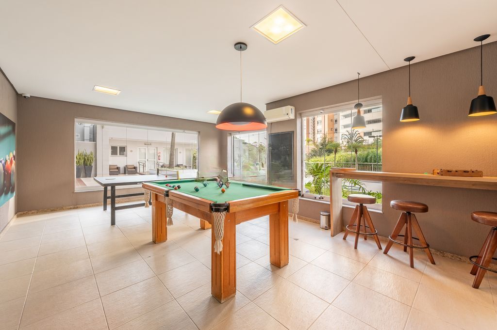 O condomínio conta com brinquedoteca, churrasqueira, espaço gourmet, fitness, lan house, piscina adulta, piscina infantil, playground, quadra poliesportiva, salão de festas, SPA, sauna, sala de jogos, praça, vestiário para funcionários, living com lareira, sacada na sala, gás central, espera para split, espera para ar-condicionado, água quente, medição de gás e água individuais, portaria 24h, circuito de TV interno, zelador, porteiro eletrônico, interfone e elevador.
