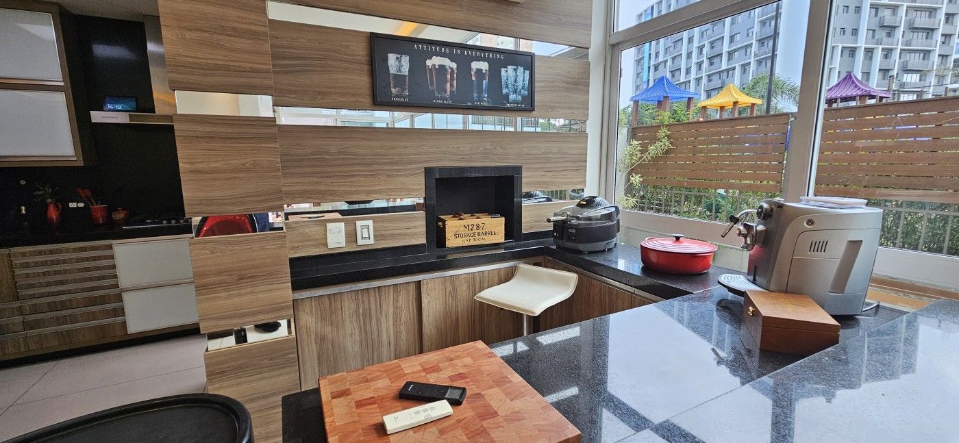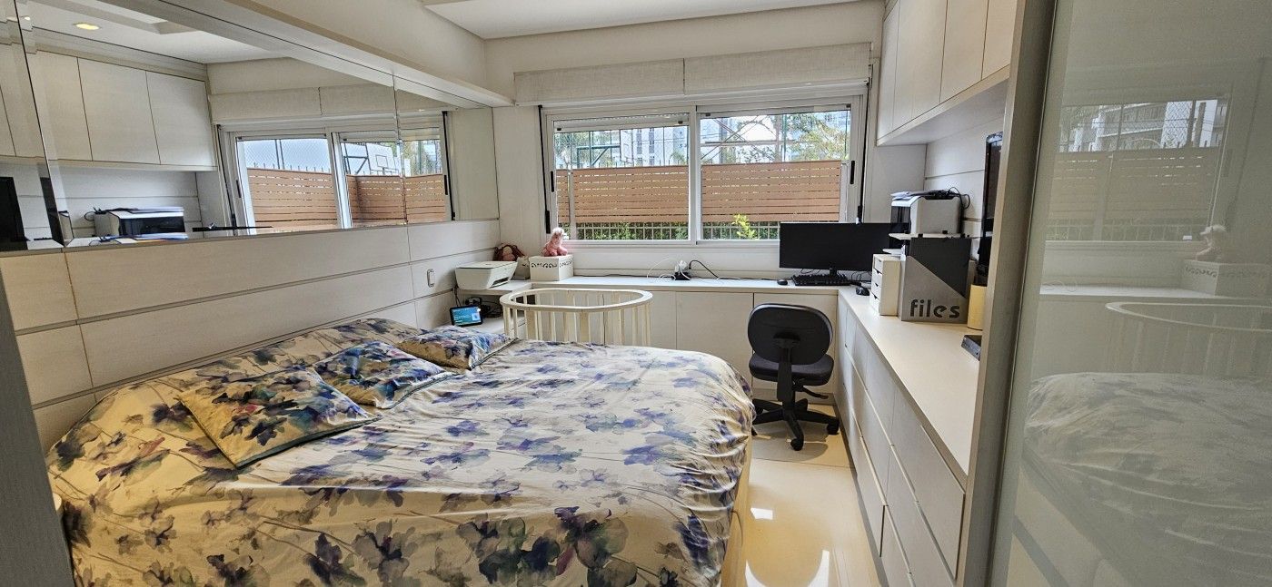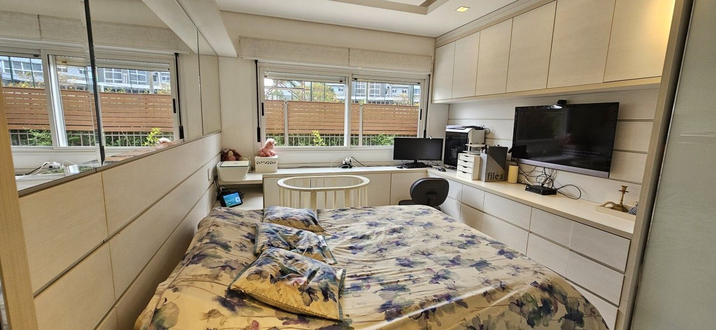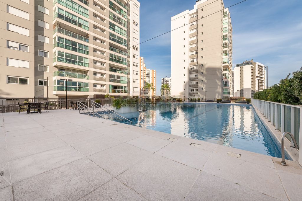 Apartamento garden com 3 dormitórios amplos, sendo 2 suítes. Living com lareira, churrasqueira com espaço gourmet, sala de jantar, cozinha americana com balcão em mármore, área de serviço separada e um depósito privativo. Um generoso espaço garden externo que recebe sol e ventilação o dia todo.