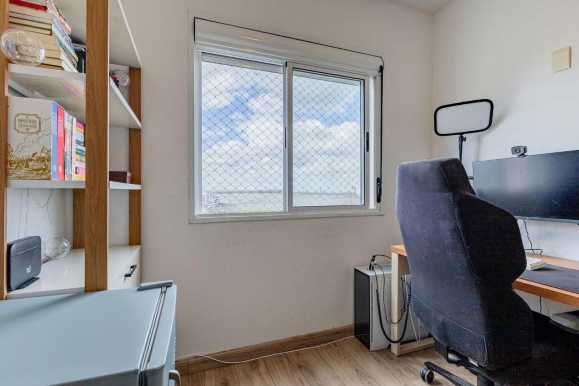 Segundo quarto versátil, com possibilidade de uso como escritório, despensa, biblioteca, espaço para treinos, quarto de visitas, sala de jogos para crianças, home office, área de lazer, área de estudos ou refúgio literário. Terceiro quarto utilizado como closet amplo, ventilado e iluminado. Banheiro auxiliar com móveis sob medida, janelas amplas e acabamento de qualidade.