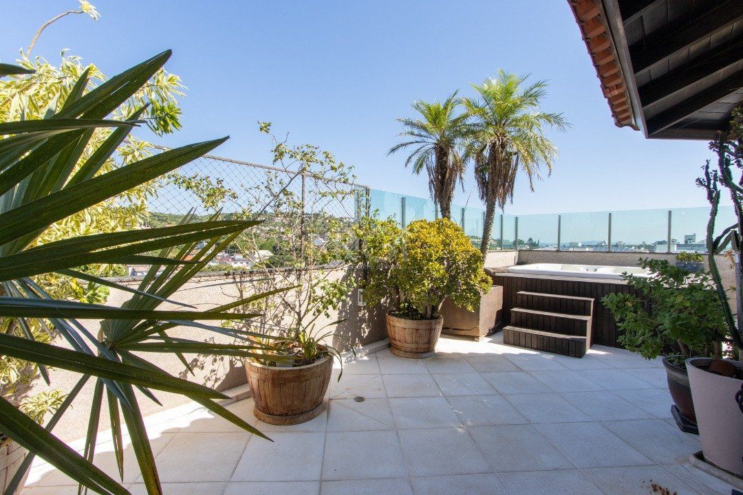 No andar superior ampla sala com lareira, espaço gourmet com churrasqueira e um magnífico terraço com SPA ( jacuzzi).