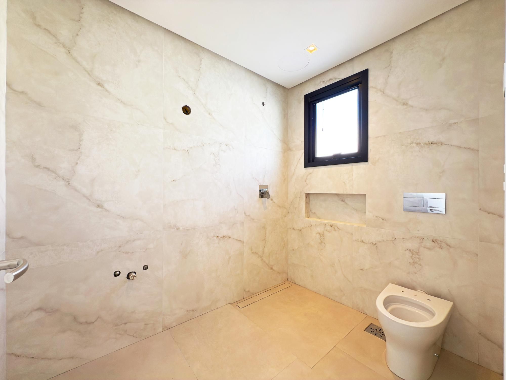 - porcelanato 90x90 no piso e revestimento dos banheiros- banheiro da suíte master entregue com banheira de imersão - esquadrias em alumínio preto linha Eurodoor 45mm nas portas janelas - ripado em alumino amadeirado - sistema fotovoltaico com 20 painéis e carregador para carro elétrico na garagem