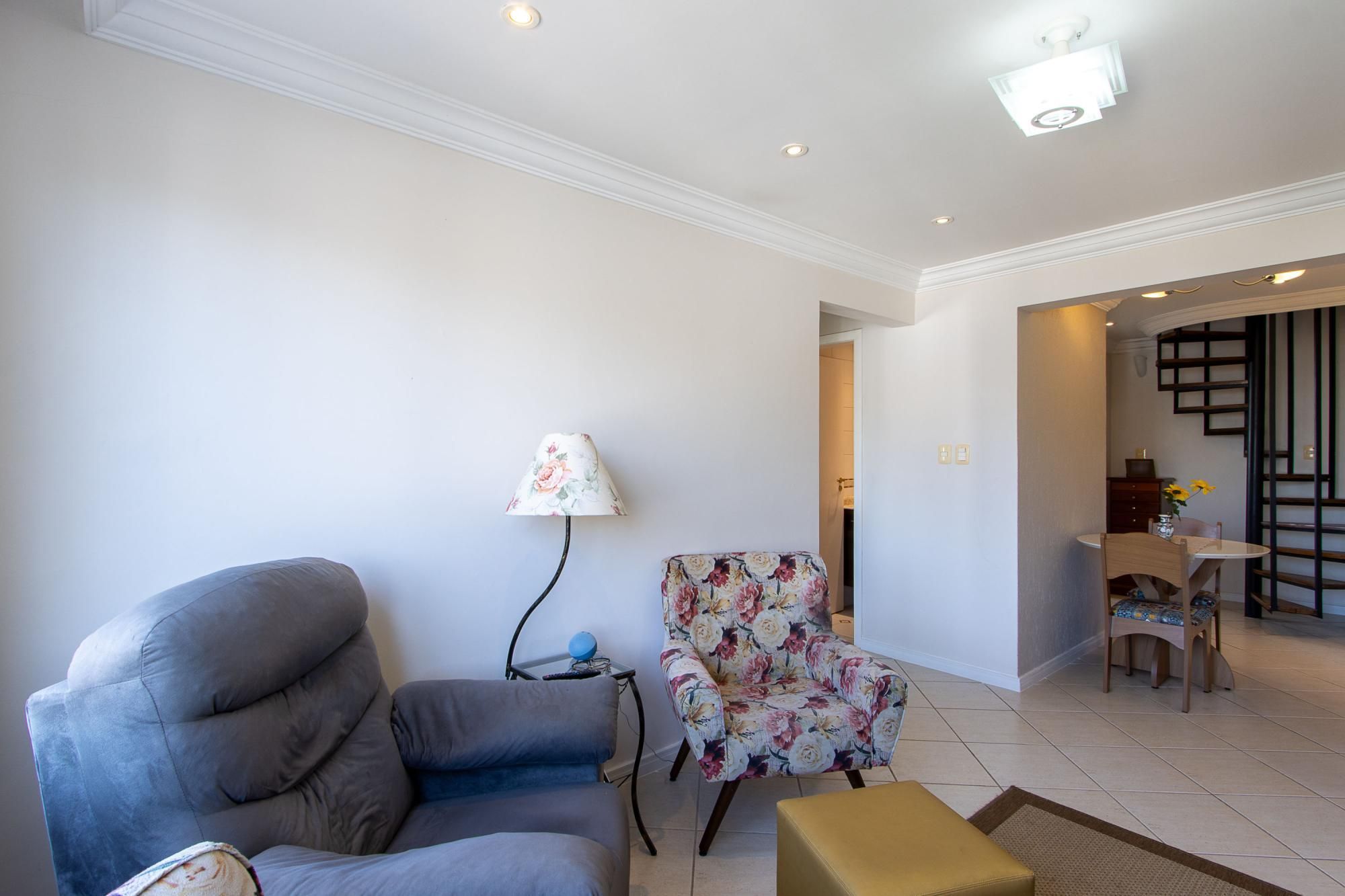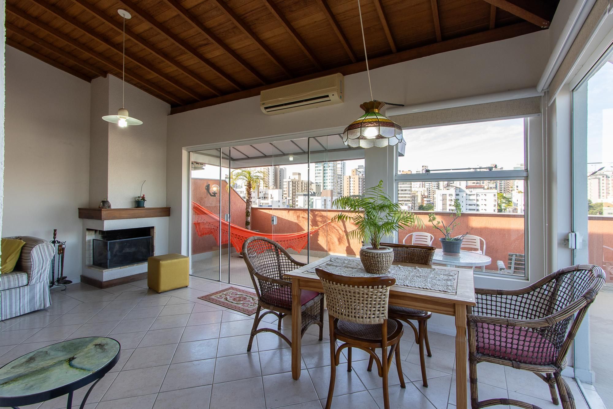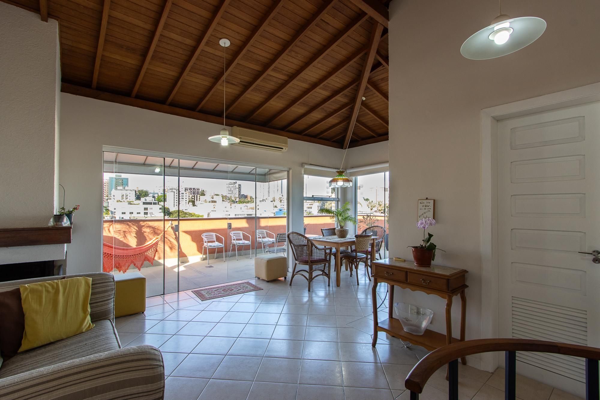 Cobertura com 2 dormitórios, incluindo 1 suíte. No piso superior: espaçosa sala de estar para dois ambientes, com lareira, lavabo, terraço em formato de L com churrasqueira e uma belíssima vista panorâmica. No piso inferior: sala de estar para dois ambientes, cozinha equipada, lavanderia, banheiro extra, os dormitórios, a suíte e o banheiro social.