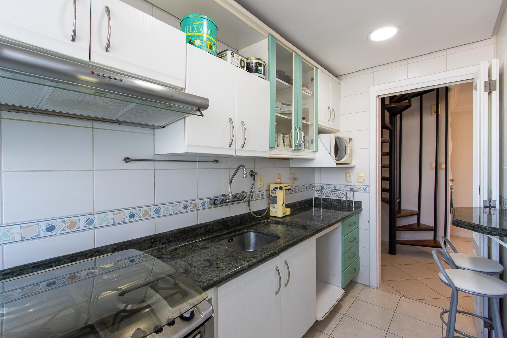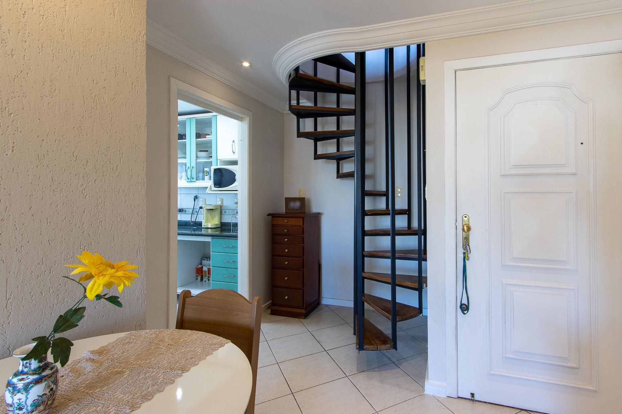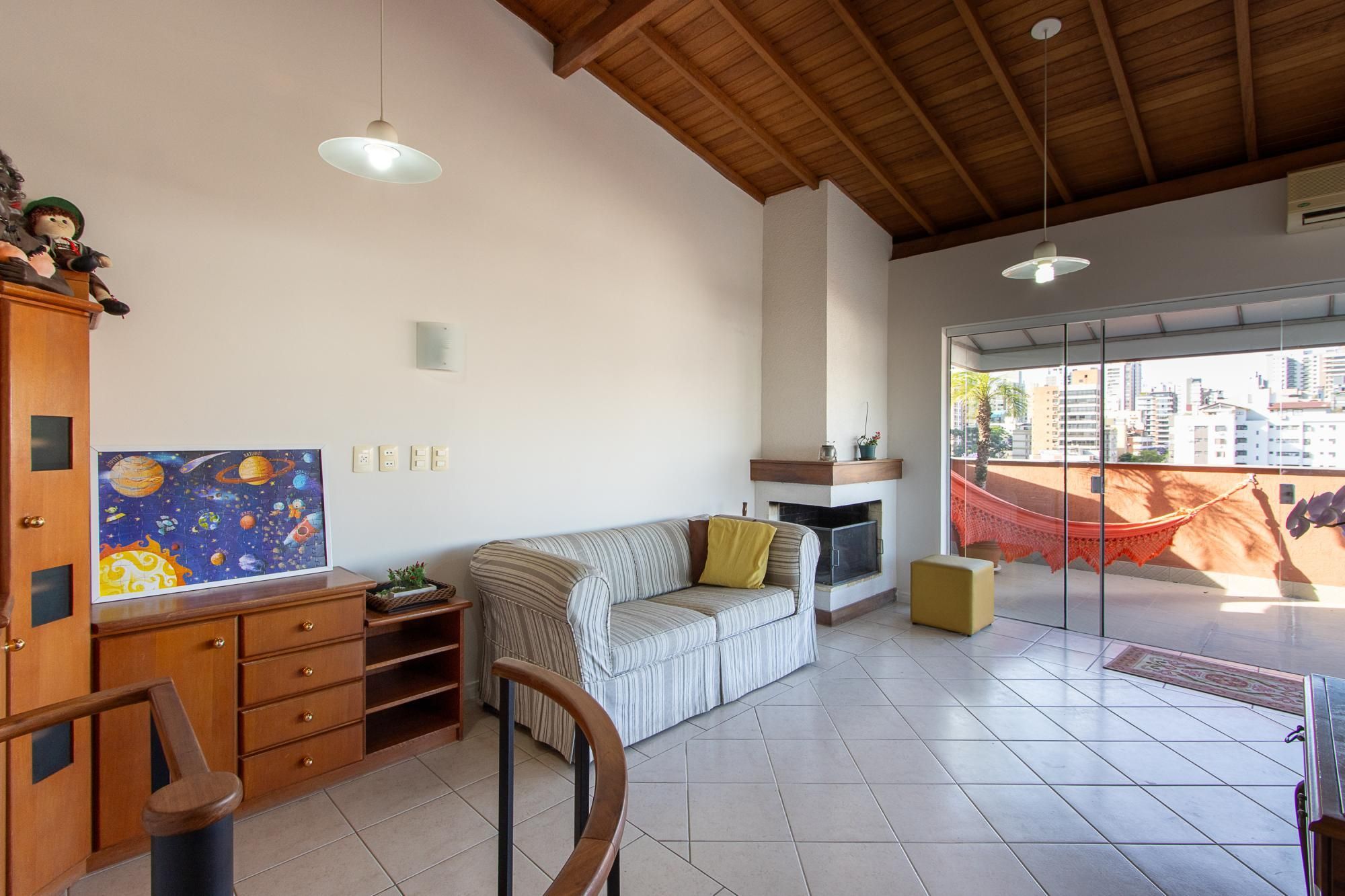 Cobertura com 2 dormitórios, incluindo 1 suíte. No piso superior: espaçosa sala de estar para dois ambientes, com lareira, lavabo, terraço em formato de L com churrasqueira e uma belíssima vista panorâmica. No piso inferior: sala de estar para dois ambientes, cozinha equipada, lavanderia, banheiro extra, os dormitórios, a suíte e o banheiro social.