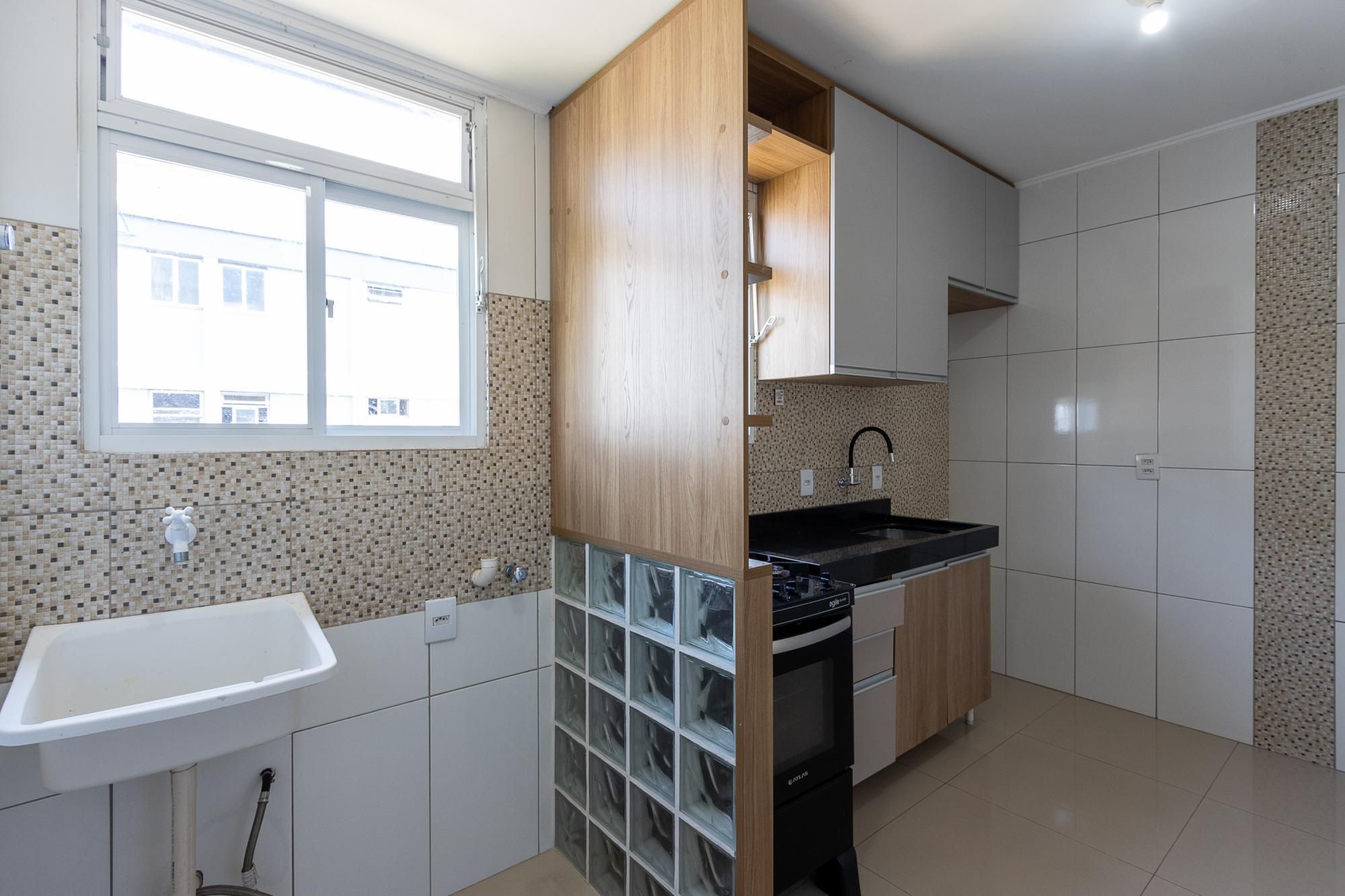 Excelente apartamento totalmente reformado, desocupado, 3 dormitórios, living 2 ambientes, piso laminado, cozinha mobiliada, área de serviço separada, banheiro social com armário e box blindex. Entrar e morar. Dois lances de escada. Condomínio conta com portaria 24h, playground, quadra de esportes, churrasqueira coletiva, jardins e zelador. Uma vaga de garagem rotativa. Localizado próximo à Av. Otto Niemeyer, perto de comércio, escolas, mercados, padaria e transportes para diversos bairros da cidade. Agende logo sua visita.
