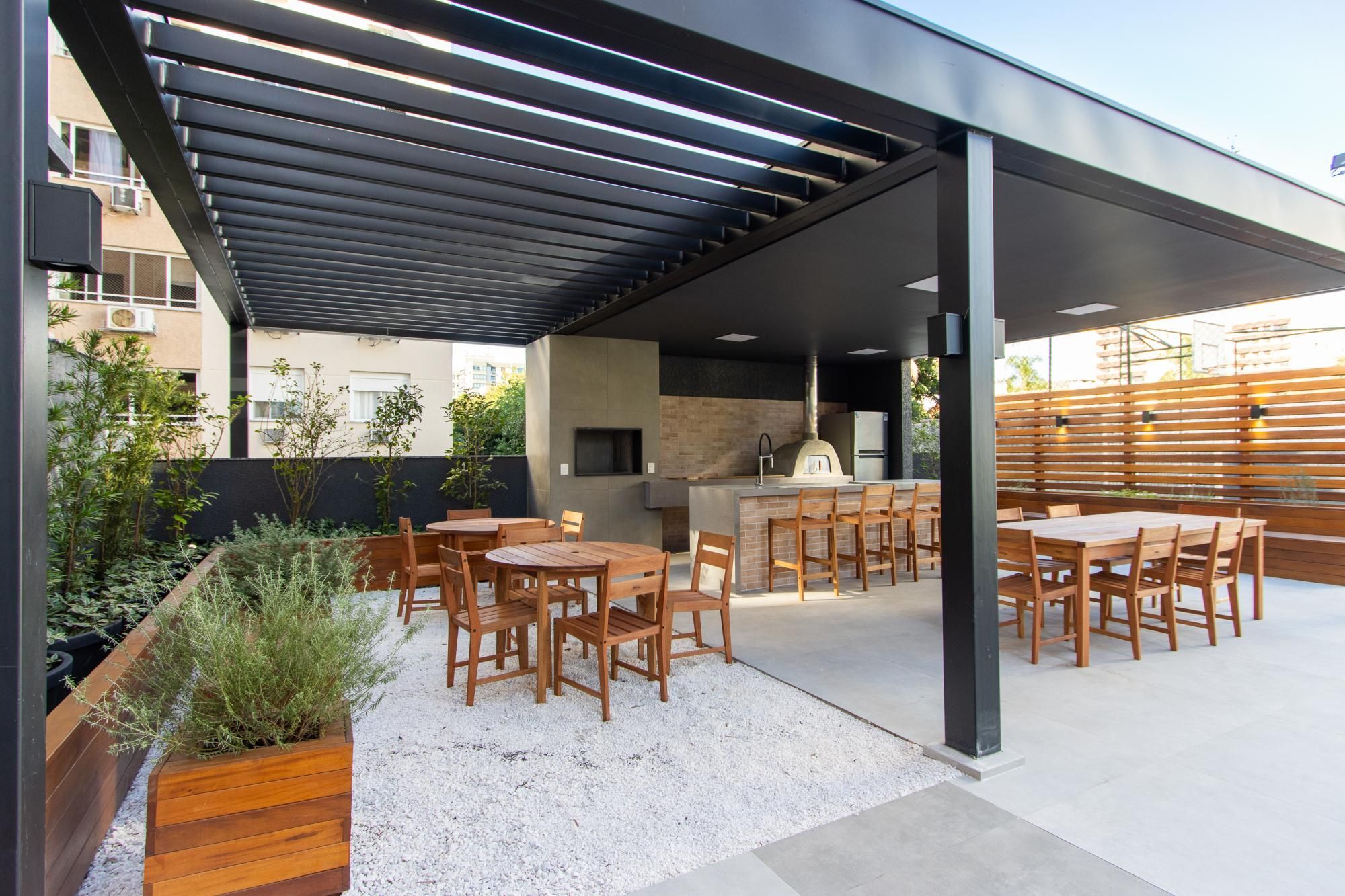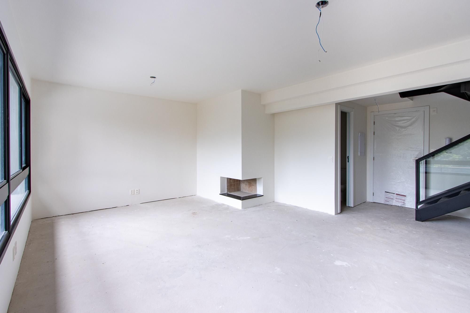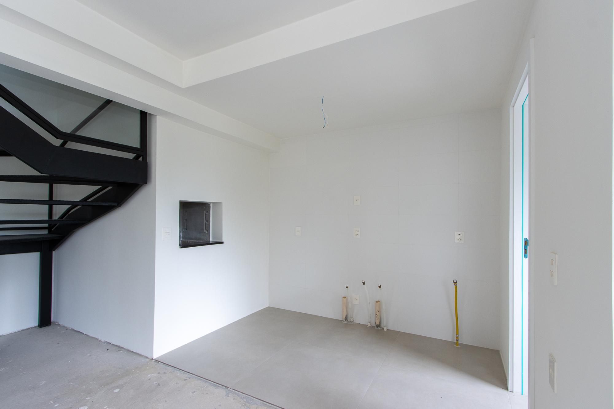 O apartamento duplex tem uma planta de 117m², contando com 3 dormitórios, sendo uma suíte, churrasqueira e lareira privativas, com vaga de garagem coberta para dois carros.