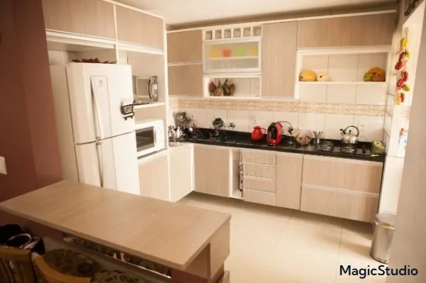 A cozinha americana proporciona praticidade no dia a dia, conectando-se aos ambientes e favorecendo a convivência.