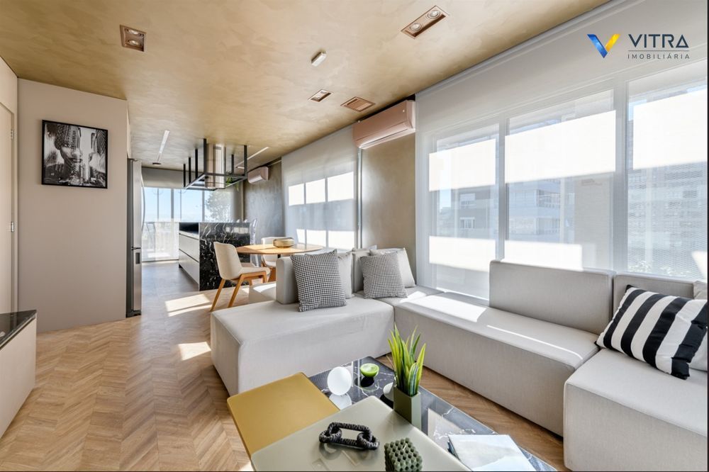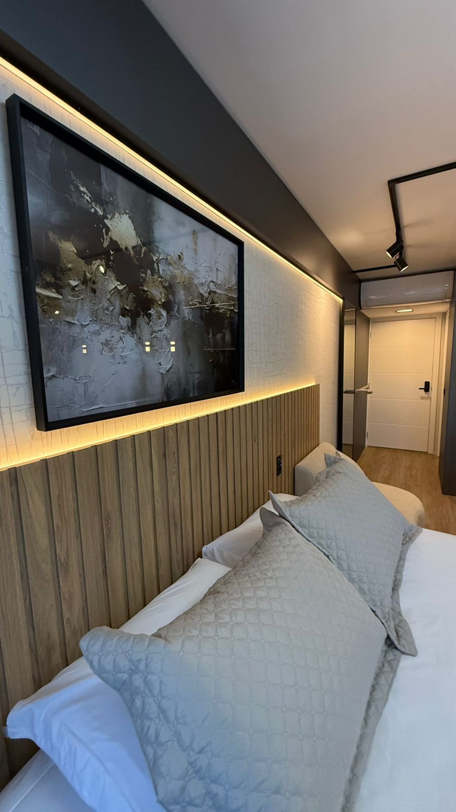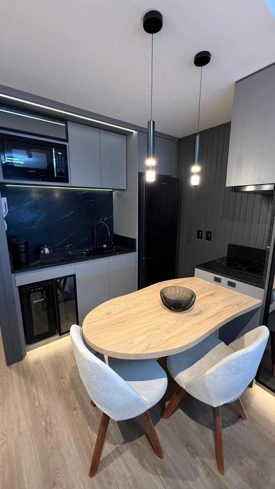 Conta com ar-condicionado instalado, cozinha completa, ambientes bem integrados e uma decoração moderna que valoriza o loft e transmite sensação de espaço e organização.