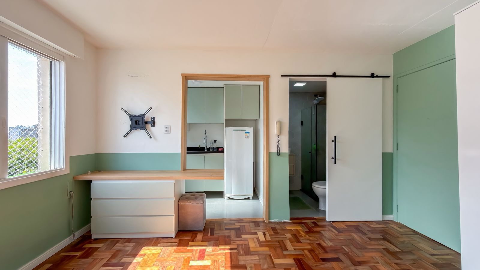 Apartamento reformado e mobiliado com ótima orientação solar, perfeito para morar ou rentabilizar ( Airbnb ) com 27 m² de área privativa com 1 dormitório, banheiro auxiliar, cozinha toda equipada, living amplo para 2 ambientes,