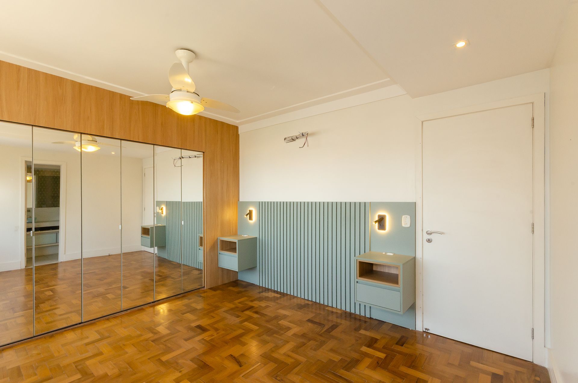 A cozinha está integrada, com armários planejados, área de serviço separada e ainda dependência que pode ser transformada em Home office. Uma flexibilidade rara.