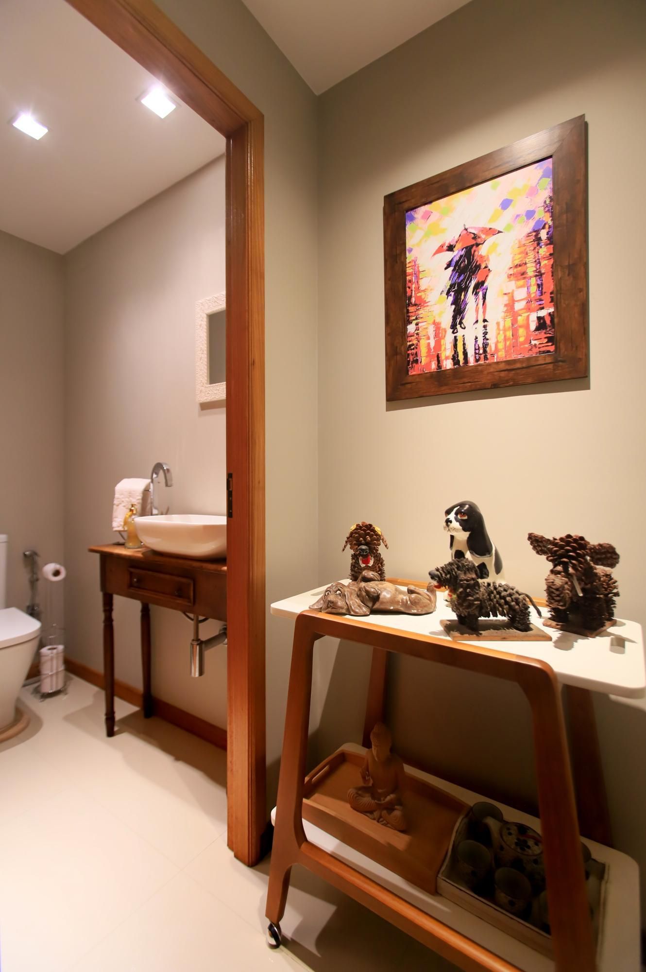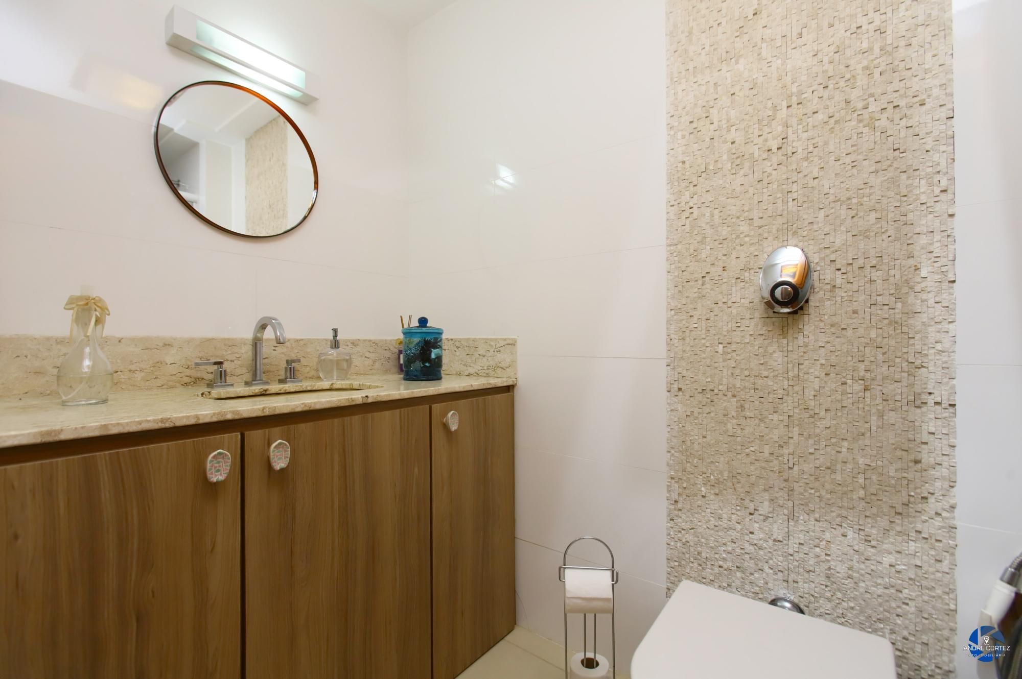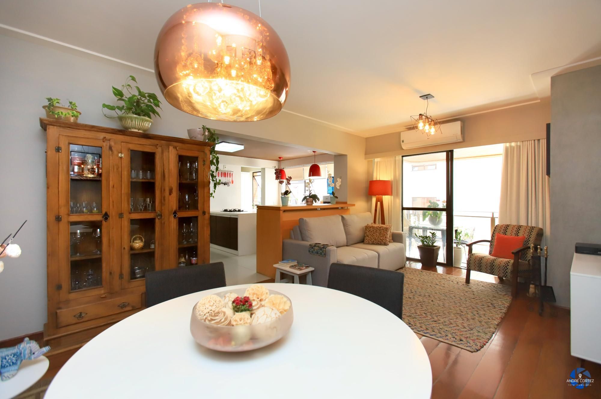O apartamento possui hall de entrada, lavabo e uma cozinha espaçosa, equipada com móveis sob medida e integrada aos ambientes de estar e jantar, criando um espaço moderno e funcional.