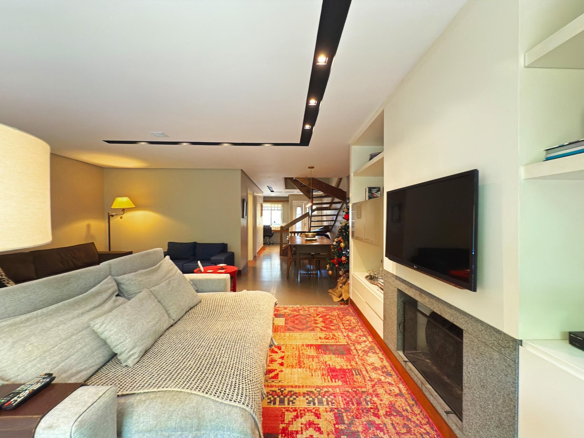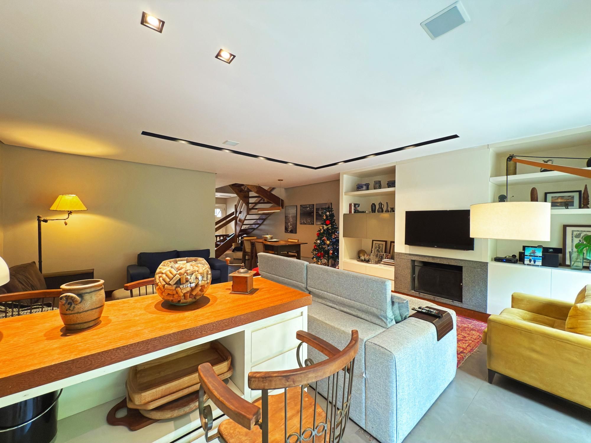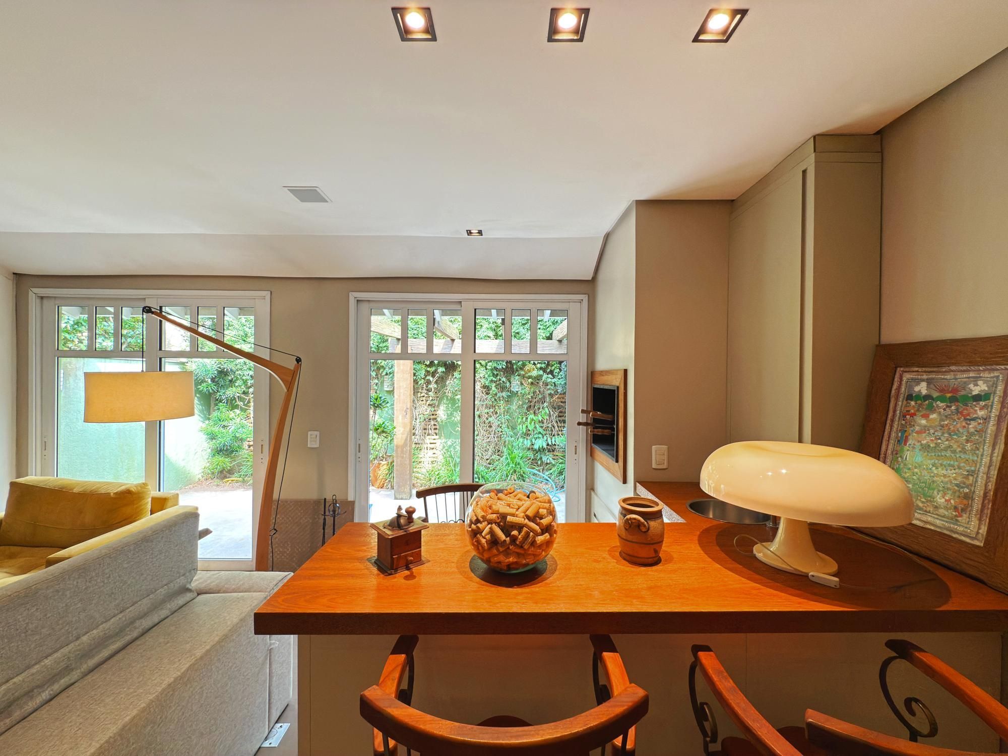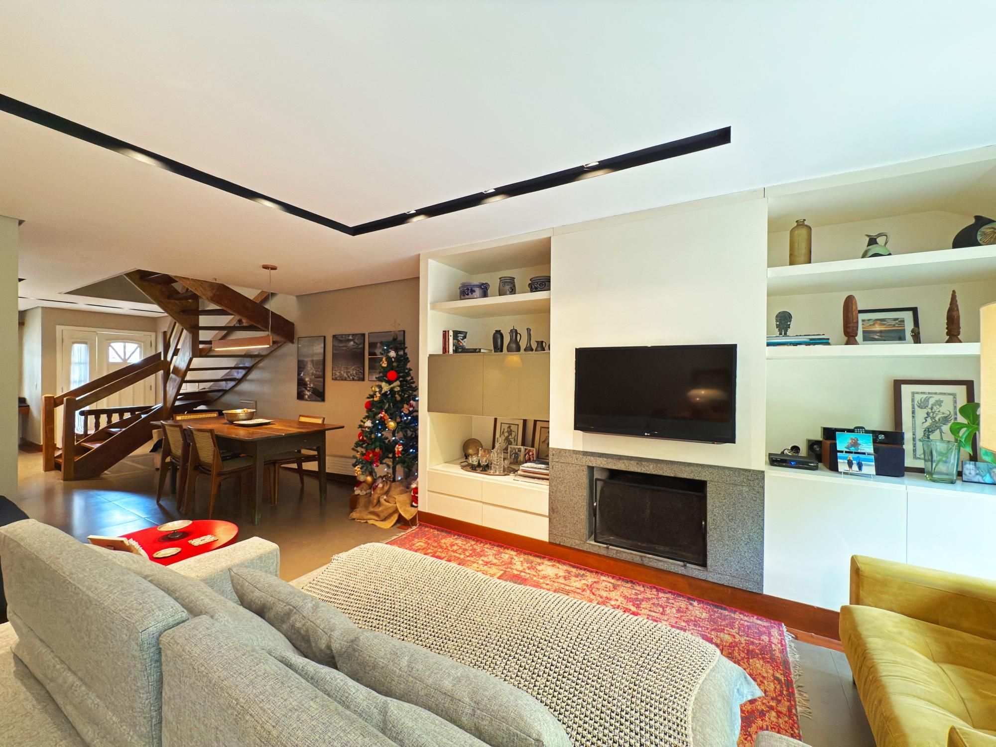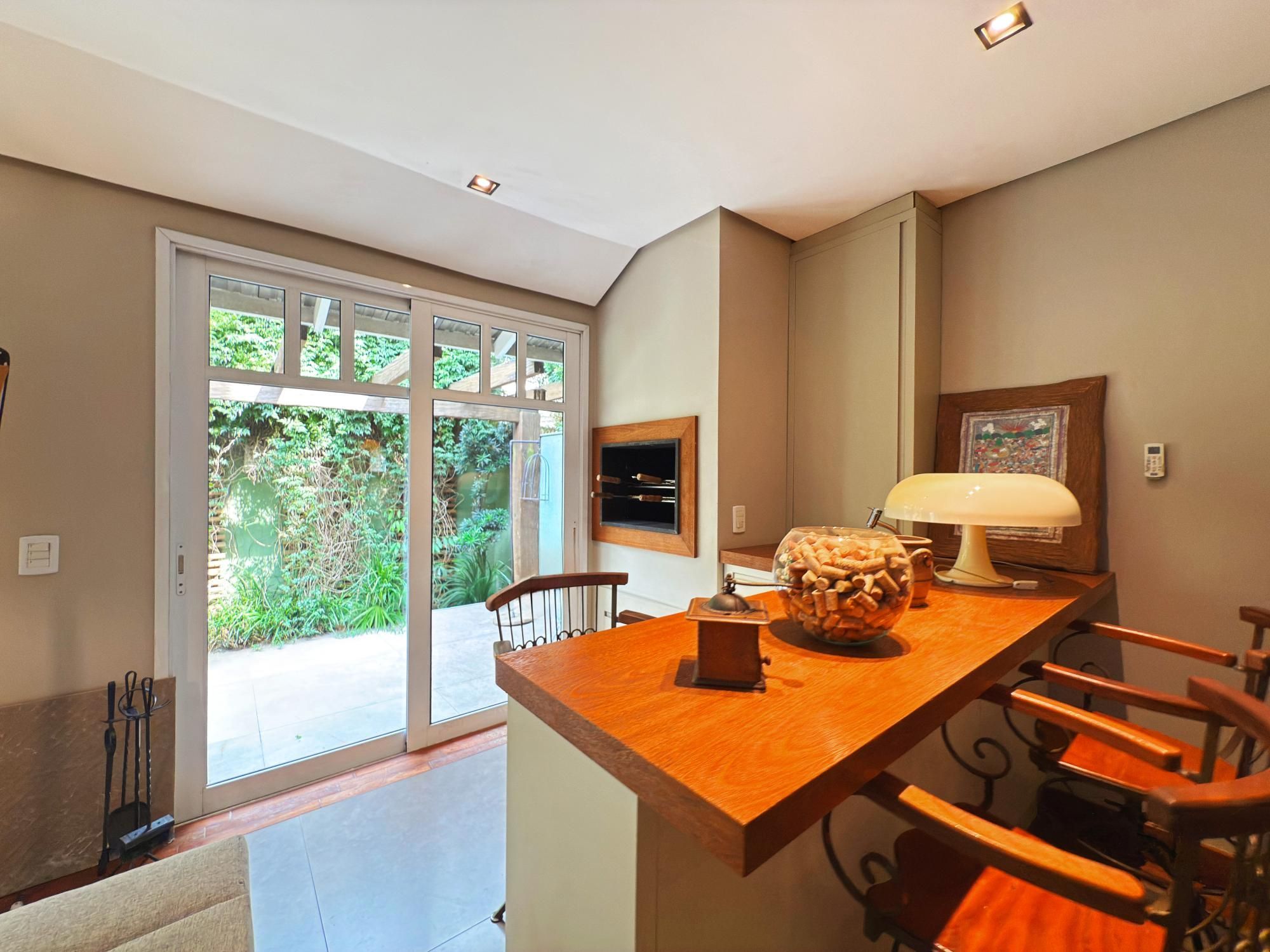 Casa com 187m2 privativos, composta de sala de estar com lareira e confortável vista para o jardim onde incide o sol da manhã, pátio privativo, espaço de jantar bem separado do espaço gourmet churrasco, piso novo de porcelanato com peças grandes, permitindo maior amplitude. O gabinete é um espaço charmoso à parte, ao lado do lavabo, tudo muito bem decorado.