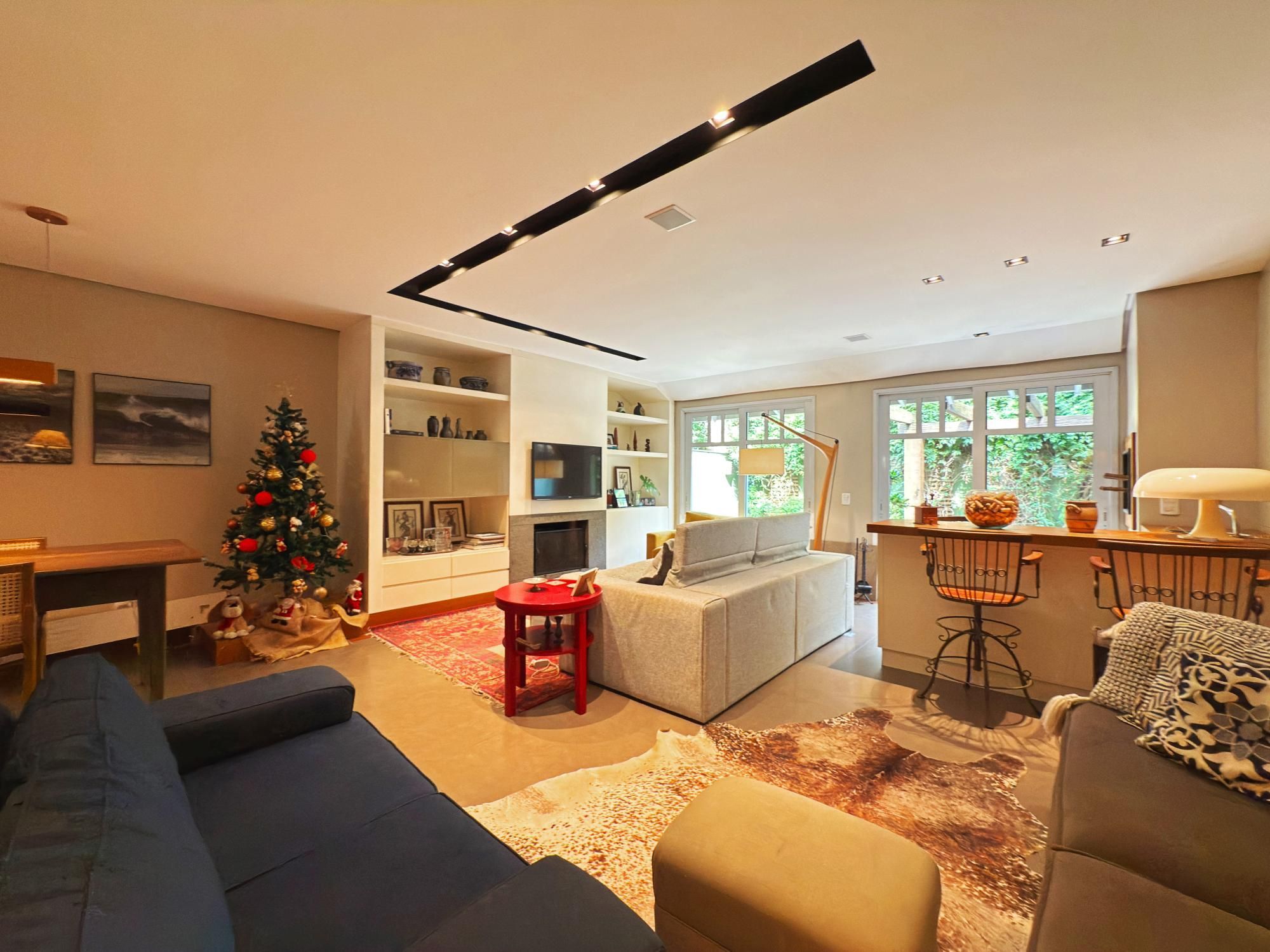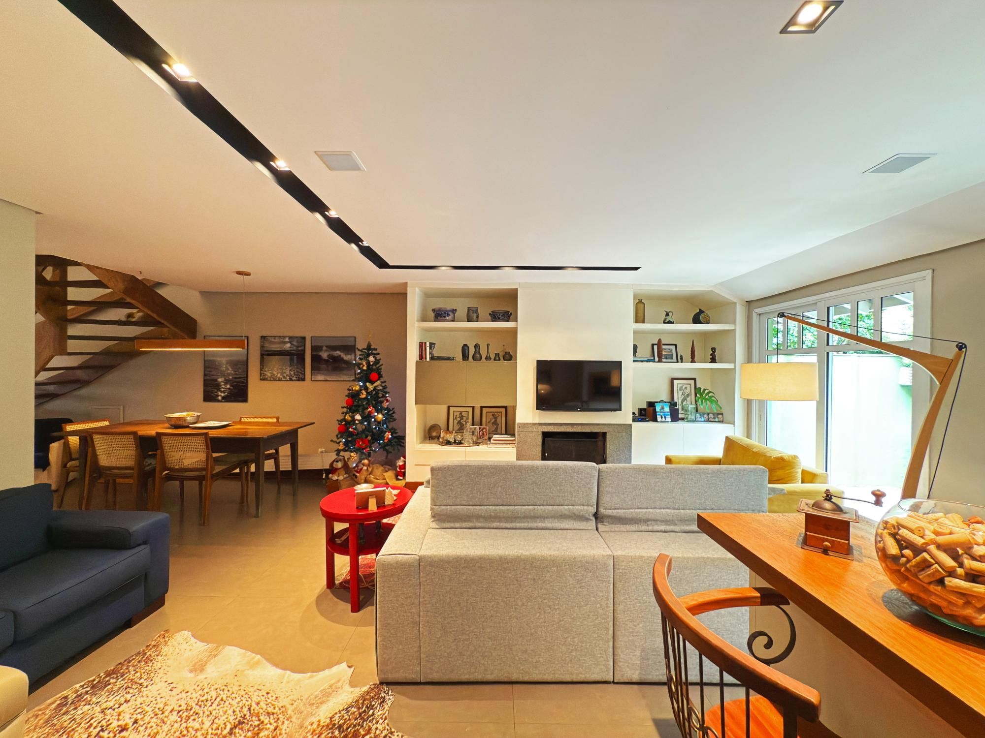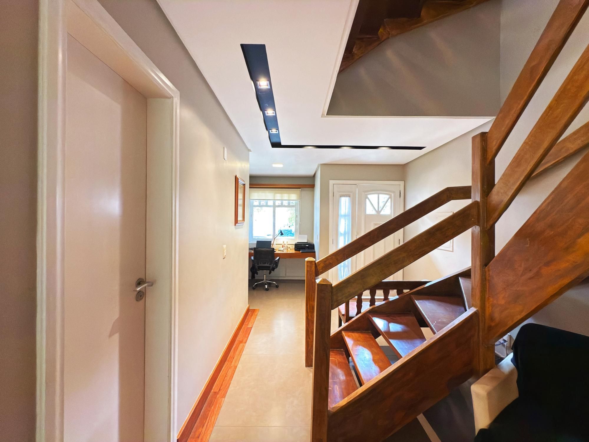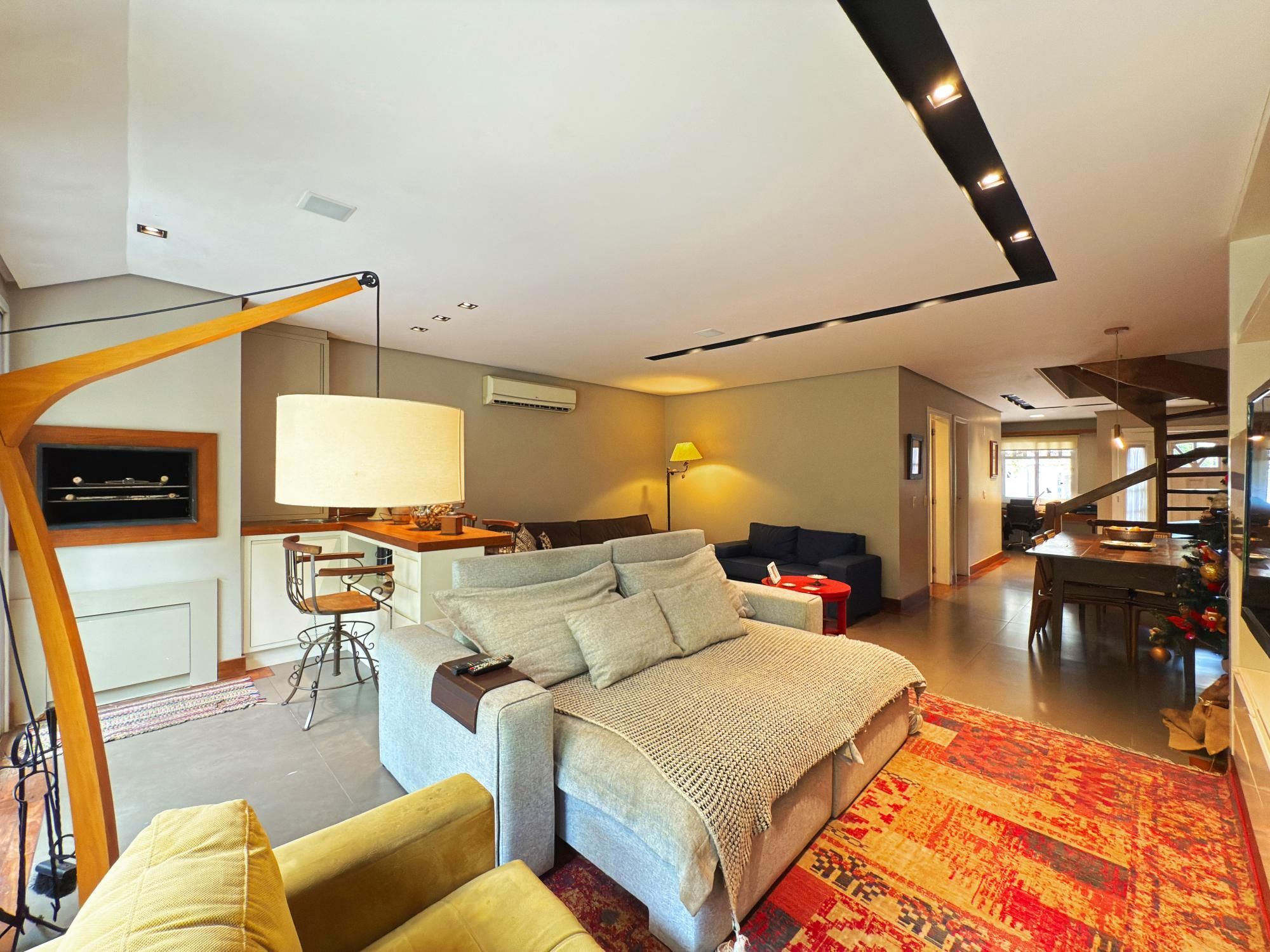 Casa com 187m2 privativos, composta de sala de estar com lareira e confortável vista para o jardim onde incide o sol da manhã, pátio privativo, espaço de jantar bem separado do espaço gourmet churrasco, piso novo de porcelanato com peças grandes, permitindo maior amplitude. O gabinete é um espaço charmoso à parte, ao lado do lavabo, tudo muito bem decorado.