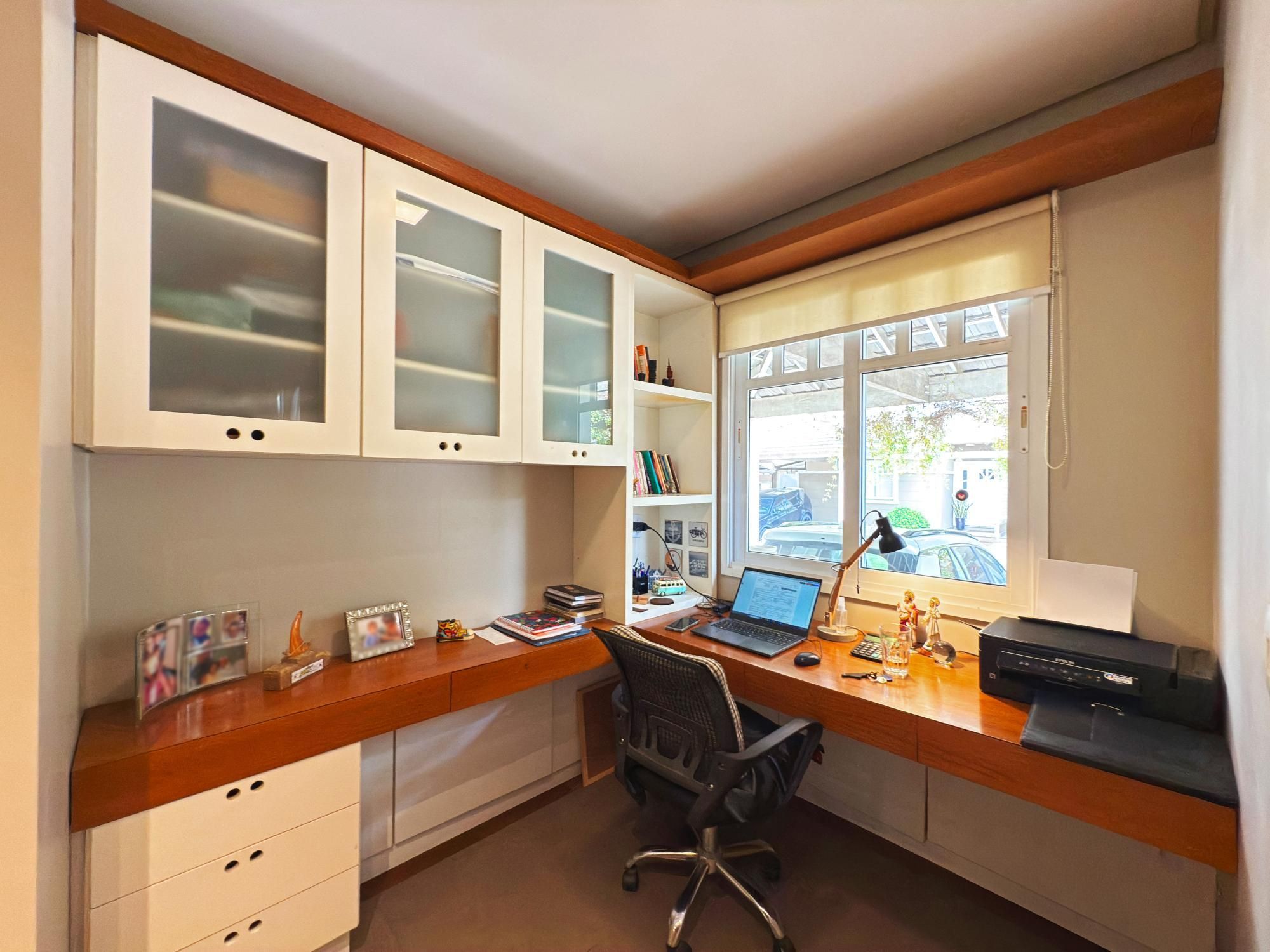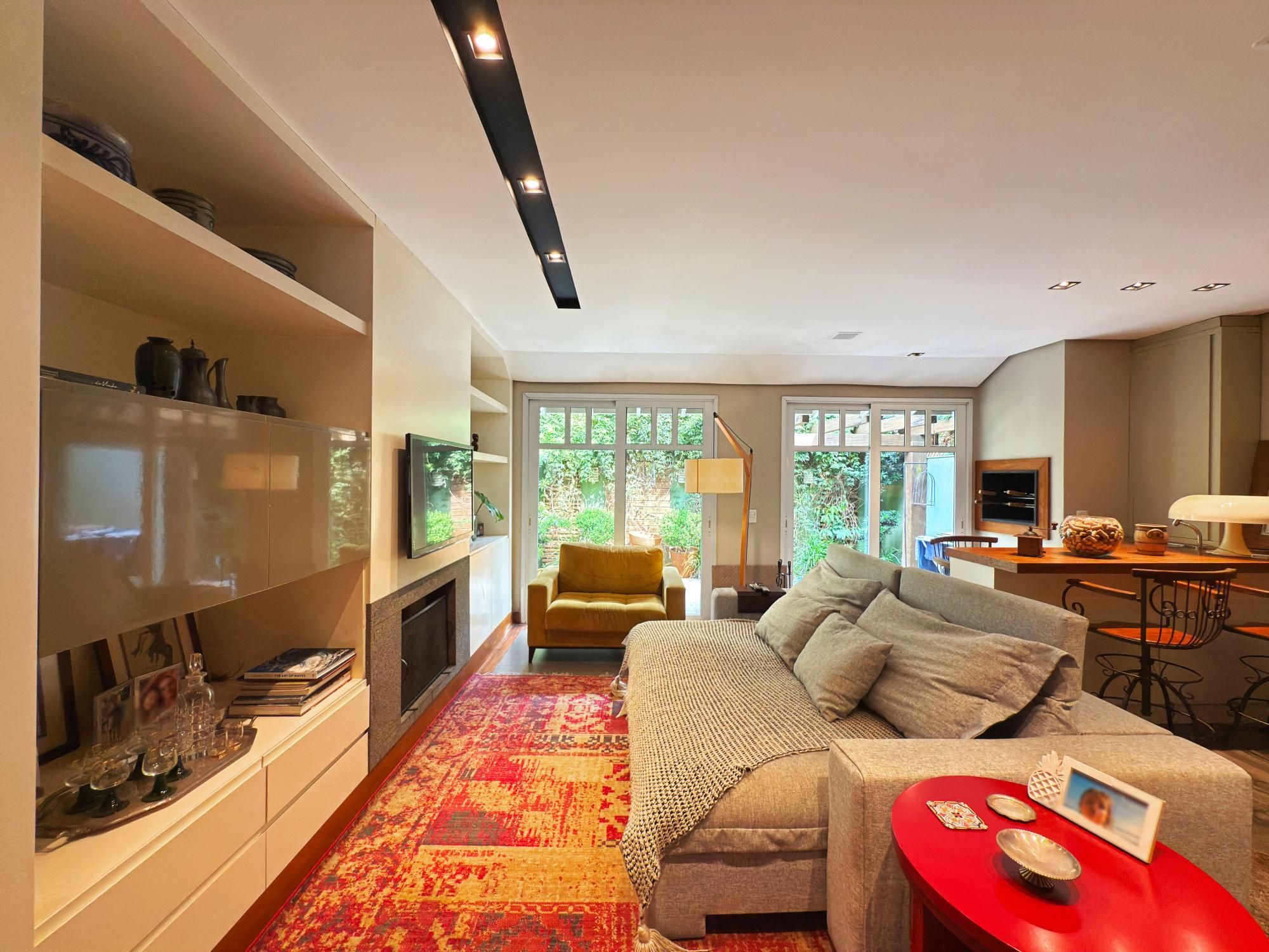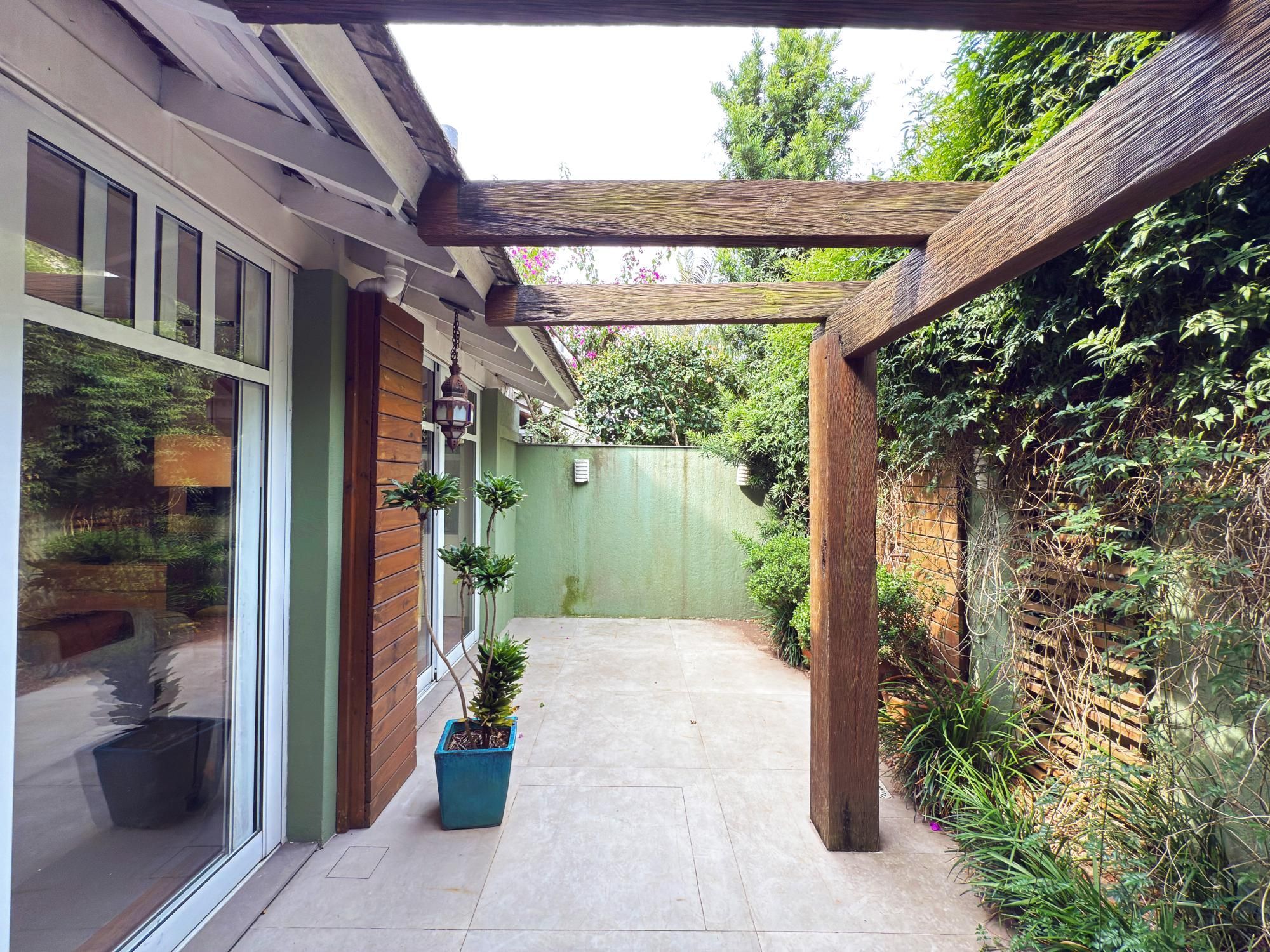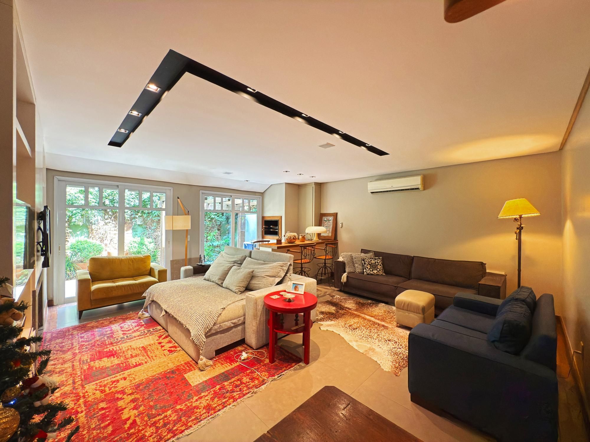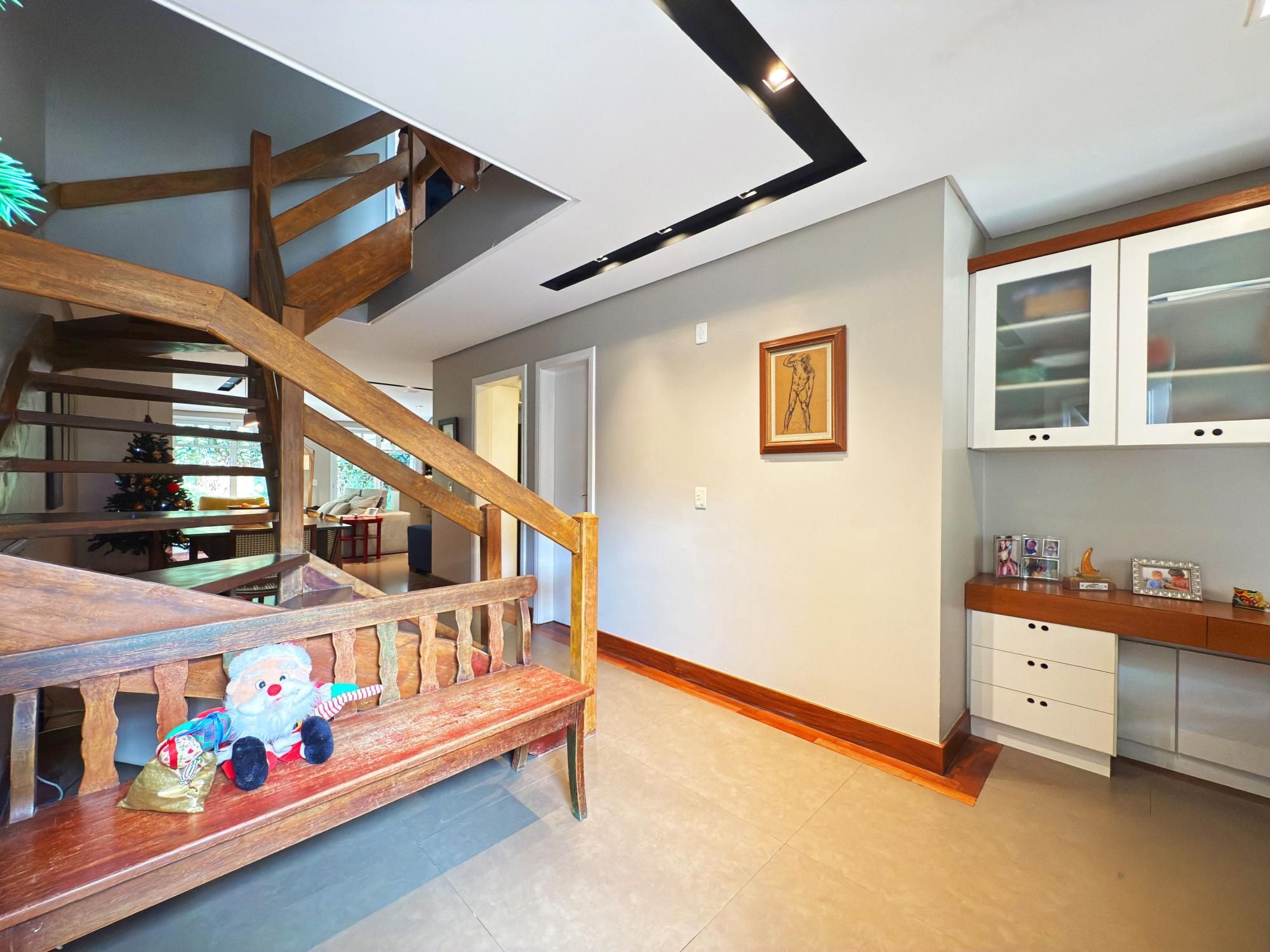 Casa com 187m2 privativos, composta de sala de estar com lareira e confortável vista para o jardim onde incide o sol da manhã, pátio privativo, espaço de jantar bem separado do espaço gourmet churrasco, piso novo de porcelanato com peças grandes, permitindo maior amplitude. O gabinete é um espaço charmoso à parte, ao lado do lavabo, tudo muito bem decorado.