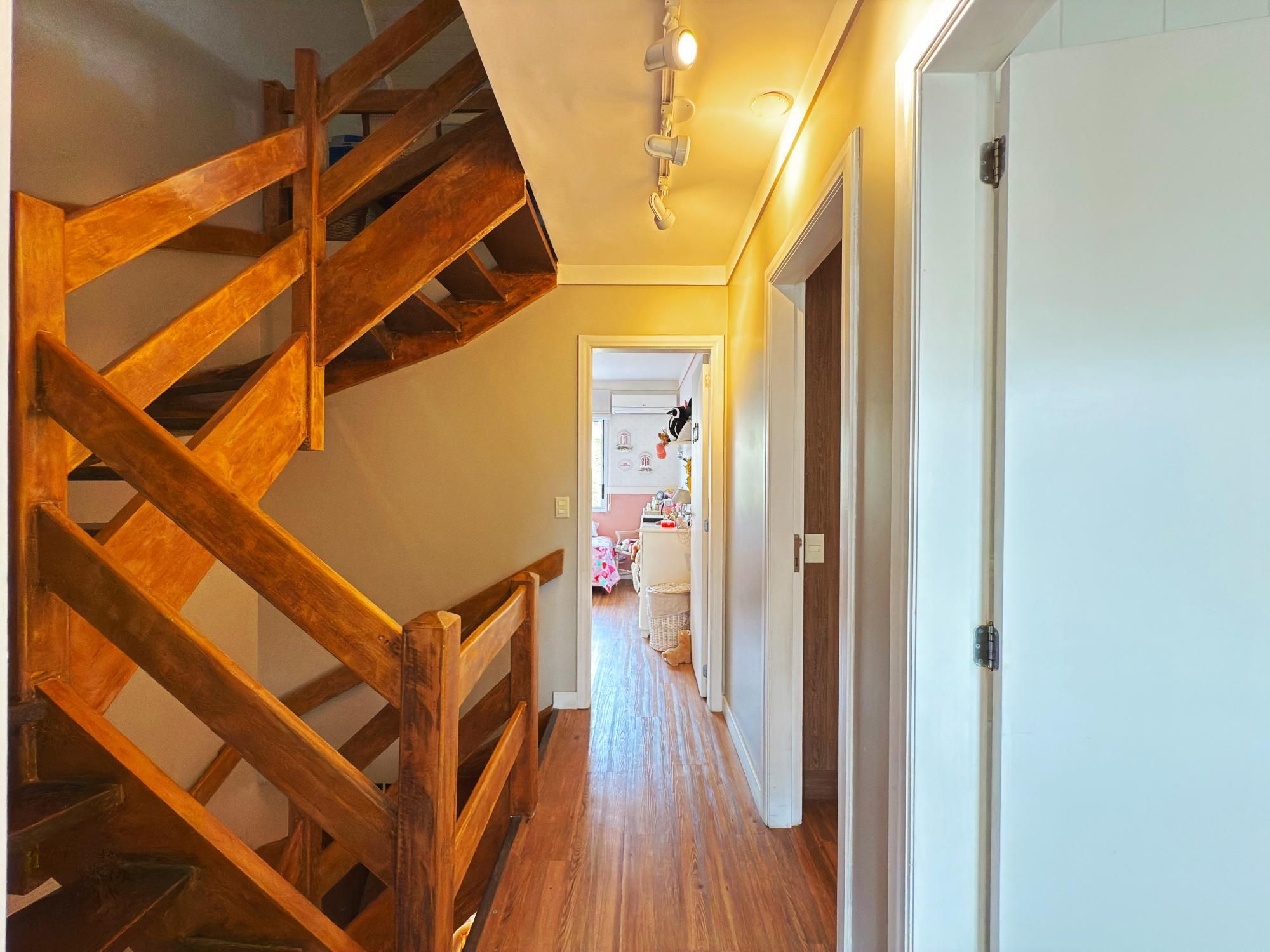 No segundo pavimento, encontramos 3 amplos dormitórios, banheiro social com ventilação natural e uma generosa suíte master também com ventilação natural.