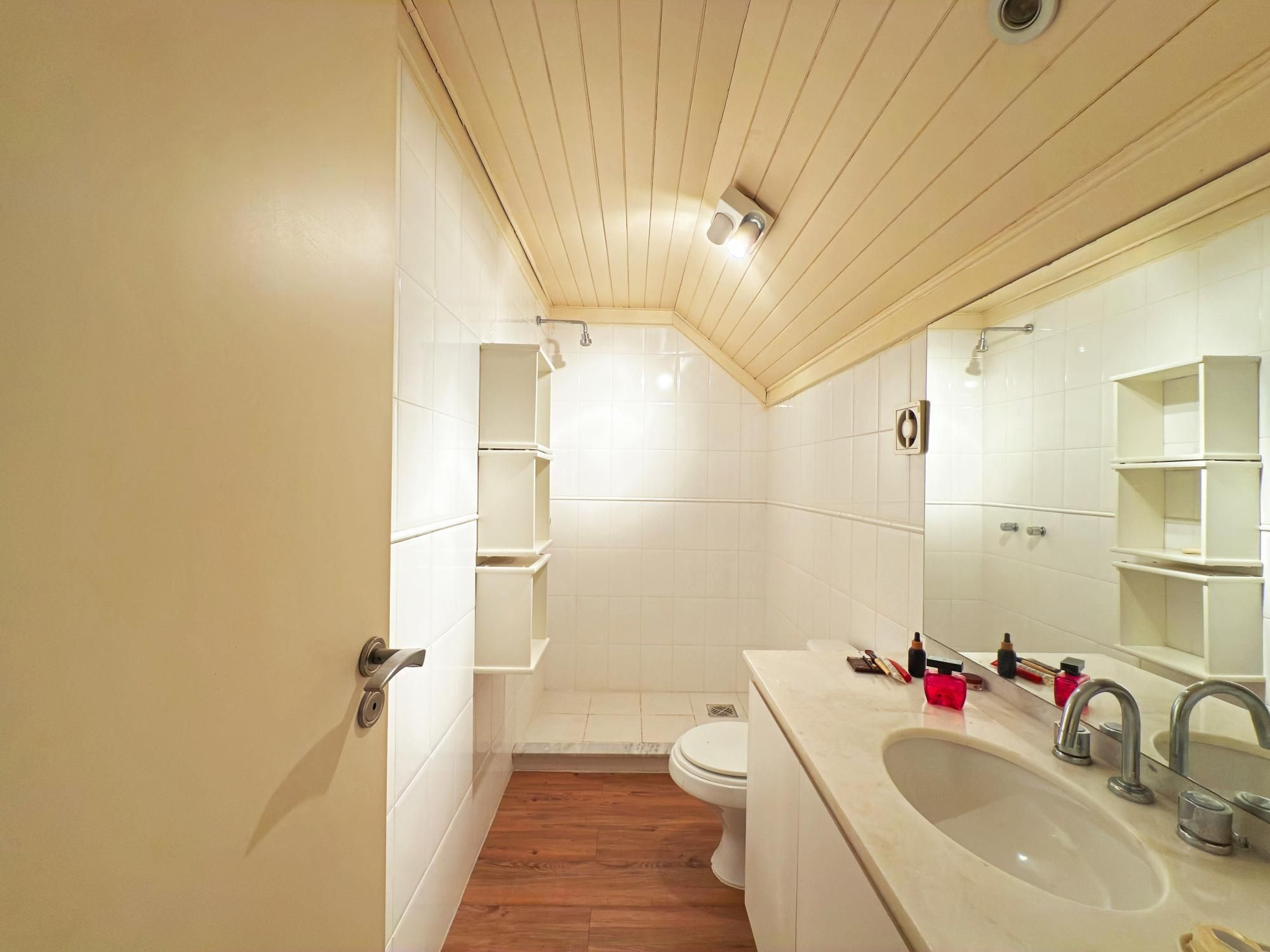 No sótão já existe um amplo espaço que pode ser confortavelmente um quarto dormutório porem nesse pavimento você encontrará um banheiro completo, podendo ter nesse espaço mais uma suíte.