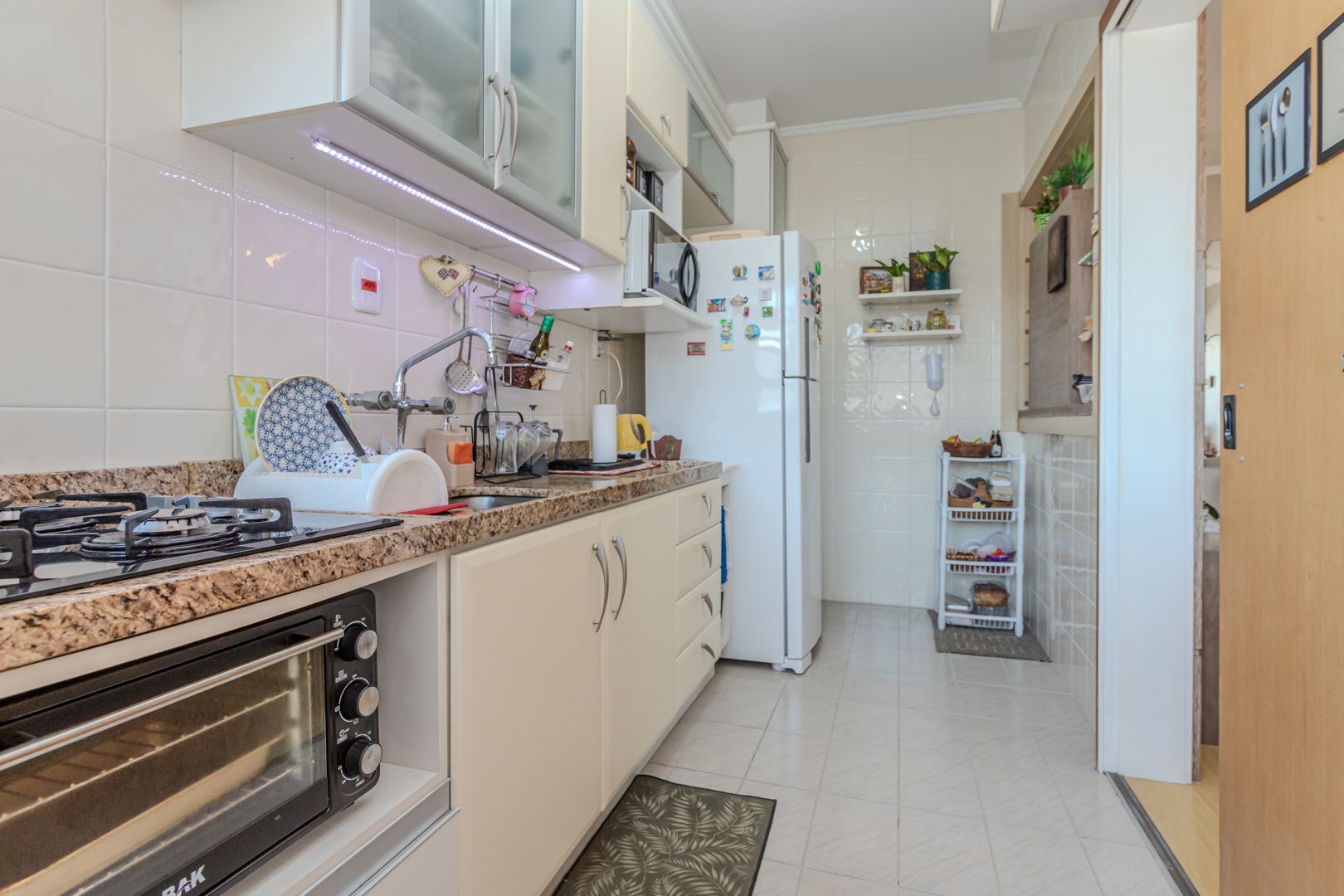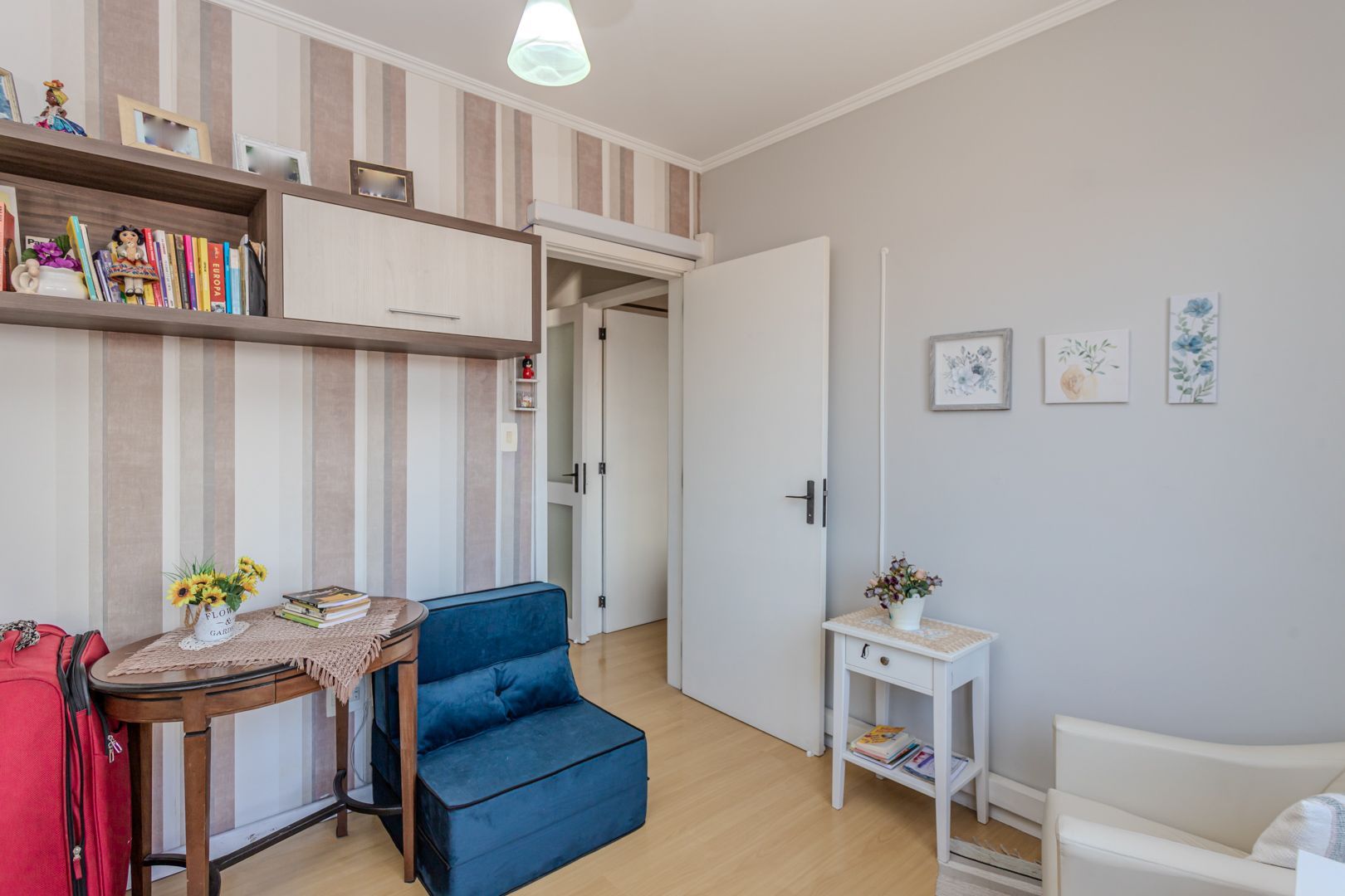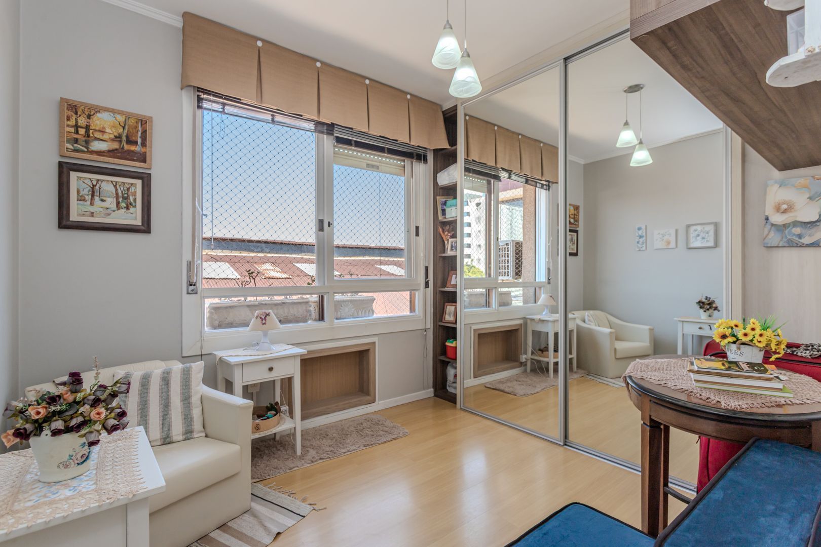 Ficam móveis planejados, fixos, com 2 quartos, 1 banheiro e 1 vaga de garagem coberta e escriturada.