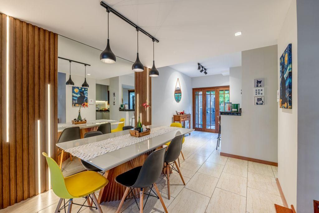 Com ambientes amplos e bem distribuídos, o imóvel foi pensado para proporcionar praticidade e aconchego. A área social convida à convivência, com espaços integrados que valorizam momentos em família e encontros com amigos. A presença de lareira e churrasqueira torna o ambiente ainda mais acolhedor, enquanto a cozinha americana garante funcionalidade ao dia a dia. O pátio privativo é um diferencial que amplia as possibilidades de uso e lazer.