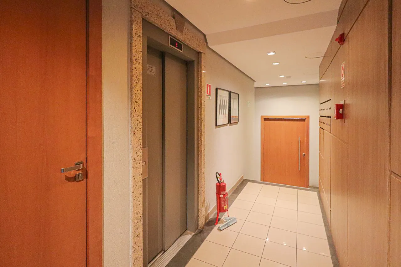 O condomínio conta com elevador, salão de festa e portão eletrônico.