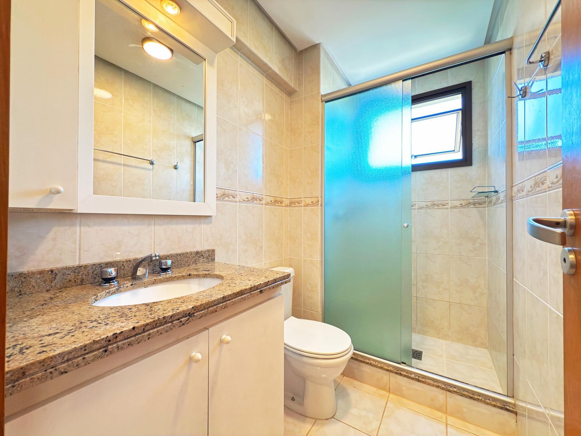 Apartamento com 84m² com 2 quartos, sendo 1 suíte e 1 closet/office, banheiro social, área de serviço, sala/sacada/cozinha integradas. Ar-condicionado na sala, quarto social e na suíte. Parrilla argentina na churrasqueira. Possui 1 vaga de garagem escriturada e coberta