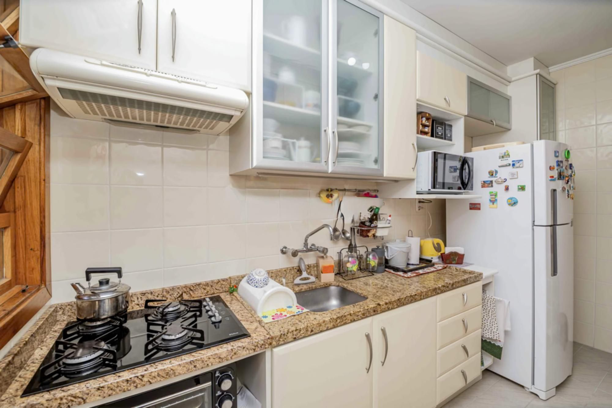 Apartamento semimobiliado com 82 m² de área privativa com 2 dormitórios com sacada, banheiro social om ventilação natural, living amplo para 2 ambientes com sacada e churrasqueira, sol da tarde, cozinha montada com área de serviço individual. Possui 1 vaga de garagem coberta.