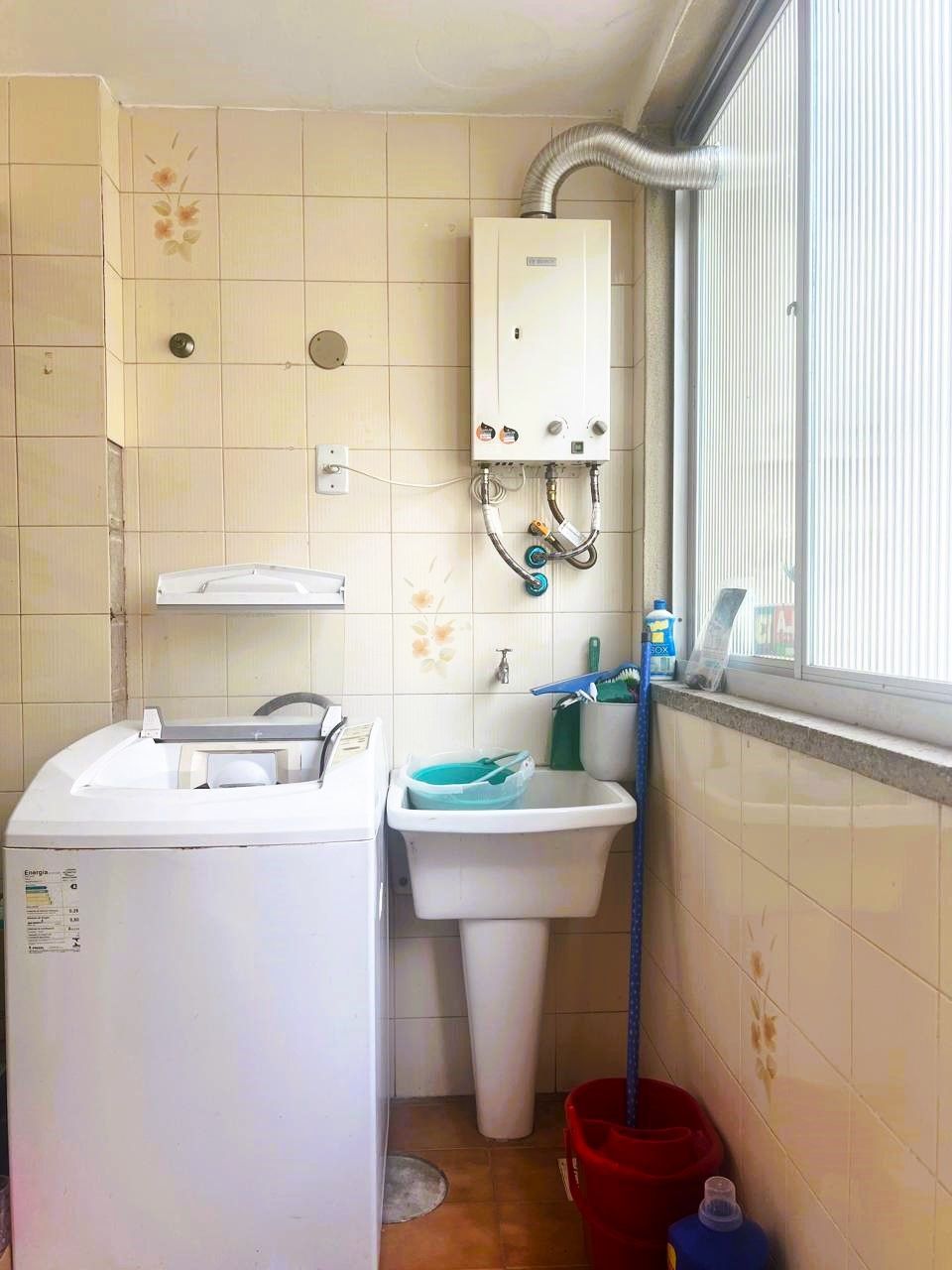 São 2 dormitórios, banheiro social, dependência completa, cozinha, além de área de serviço separada, oferecendo praticidade para o dia a dia.