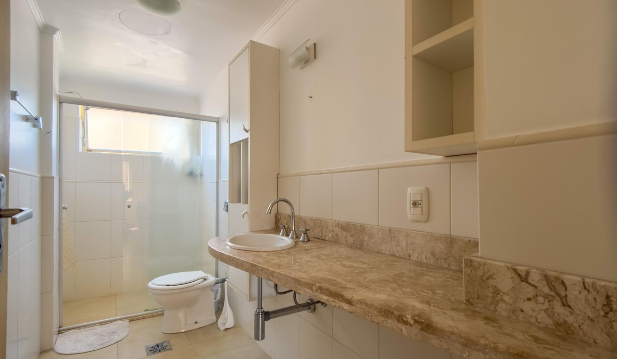 O imóvel conta com 3 dormitórios, sendo 1 suíte, além de banheiro social e banheiro auxiliar. Possui ainda dependência de empregada, que pode ser utilizada como home office ou espaço multifuncional.