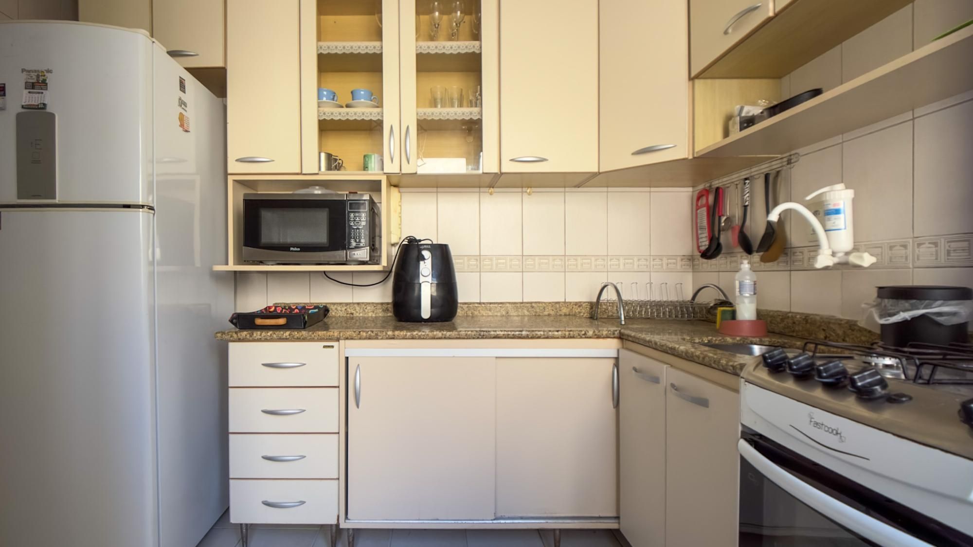 *************************************PORTEIRA FECHADA********************************** Apartamento de 2 dormitórios , sendo dormitorio de casal Vidro Anti Ruidos. em excelente estado, pronto para entrar e morar. Unidade de frente, com living amplo revestido em piso laminado, ventilador de teto e luminárias instaladas. Possui lavabo e banheiro social.A cozinha é integrada à área de serviço, bem iluminada e funcional. O imóvel conta com 1 vaga de garagem por convenção, vaga fixa, e localiza-se em prédio com 03 lances de escadas.