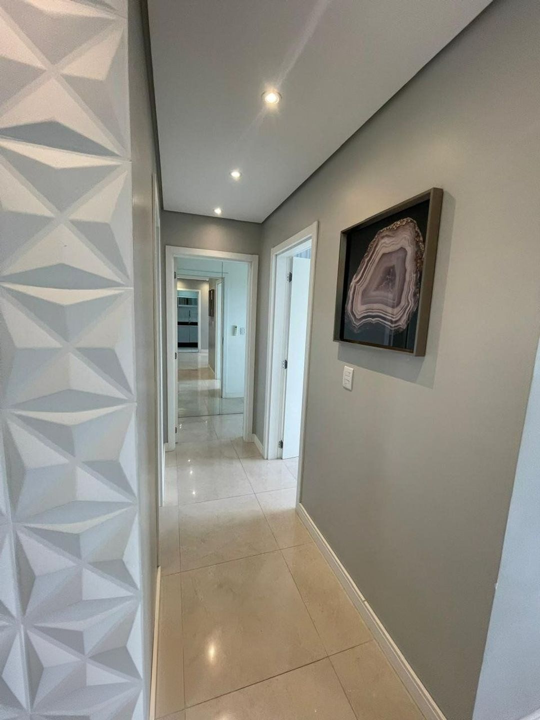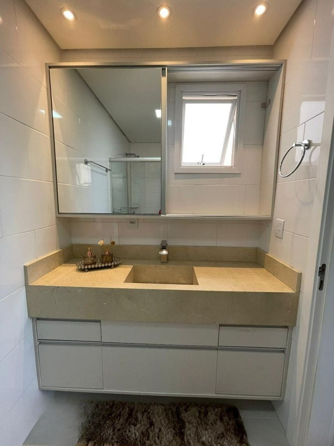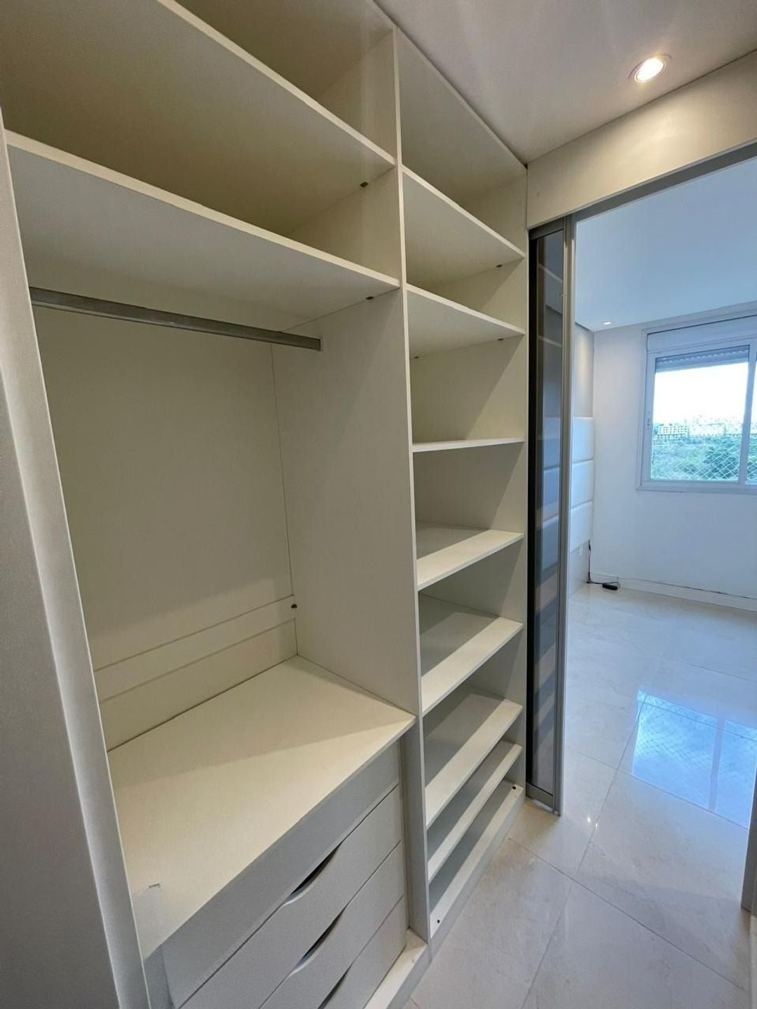 Apartamento com dormitórios, sendo 1 suíte com ar condicionado, acompanha cabeceira estofada e moveis planejados, e banheiro com ventilação natural.
