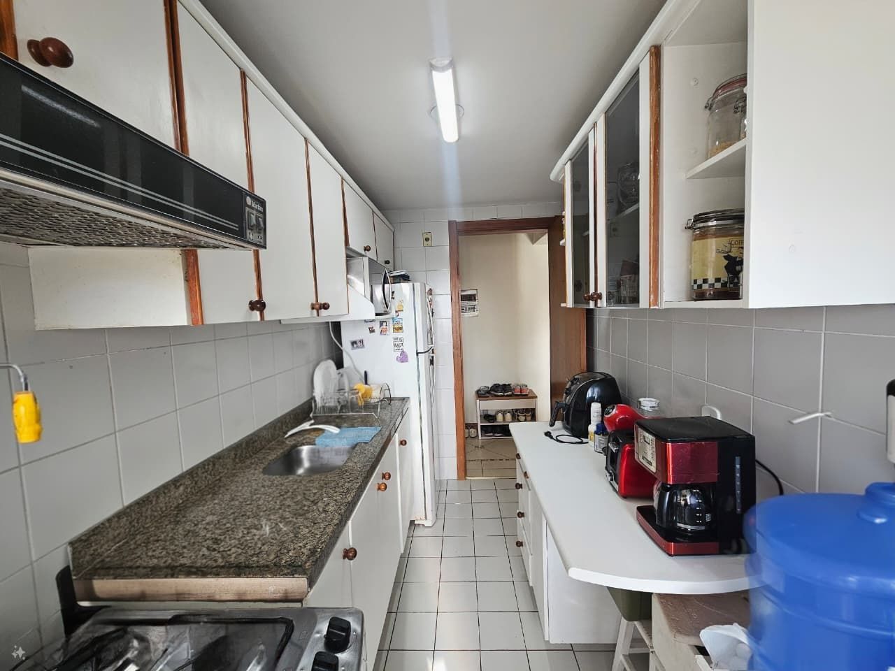 Amplo living em "L" para 3 ambientes, sacada com churrasqueira com acesso pela sala ou pela cozinha que já está mobiliada. Área de serviço separada. Banheiro social com ventilação direta e 1 vaga de garagem coberta e escriturada.
