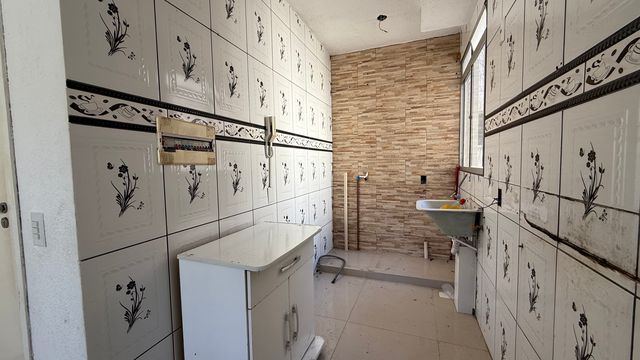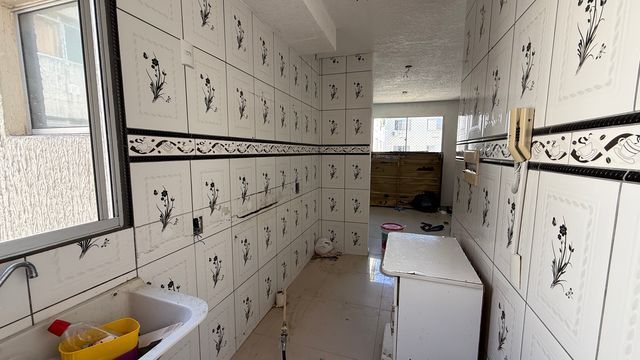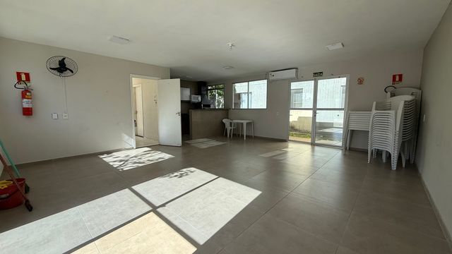 Piso de porcelanato, cozinha,sala, área de serviço, banheiro social. 1 vaga de garagem.