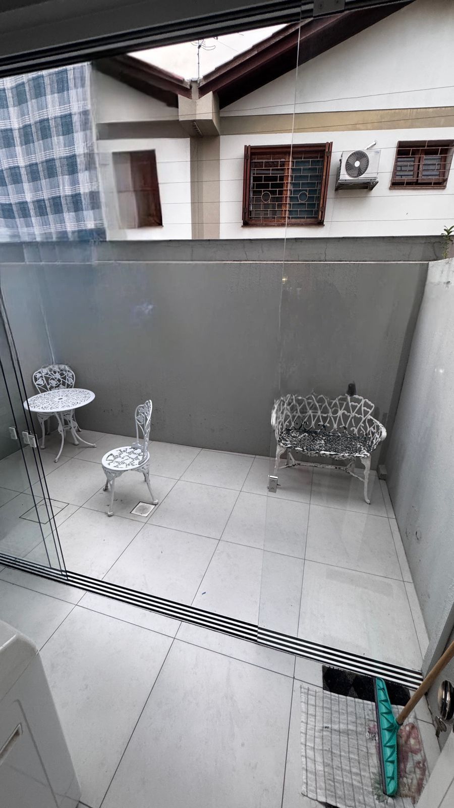 A área social é acolhedora, com living para dois ambientes, lavabo e uma cozinha ampla que se integra bem ao dia a dia da casa. Nos fundos, um pátio ensolarado com churrasqueira convida para momentos de lazer e convivência.