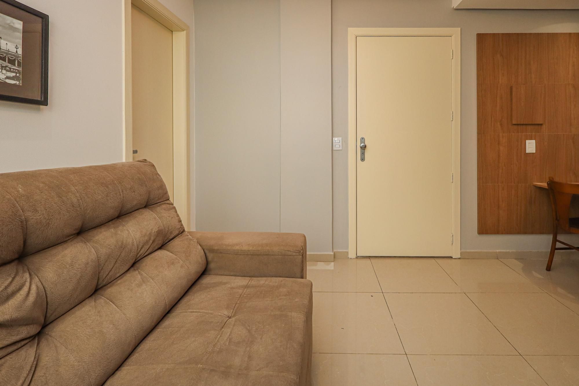 Apartamento reformado e mobiliado com 42 m² de área privativa com 1 dormitório, banheiro social com ventilação natural, living para 2 ambientes, cozinha montada com área de serviço.