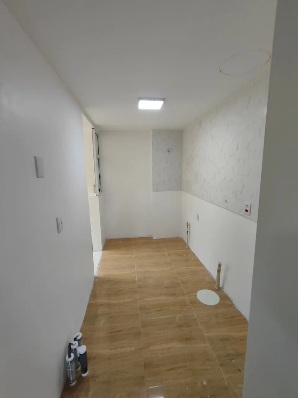 Apartamento com 3 quartos, 1 banheiro, Sala, cozinha, Banheiro auxiliar e lavanderia.