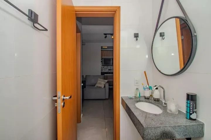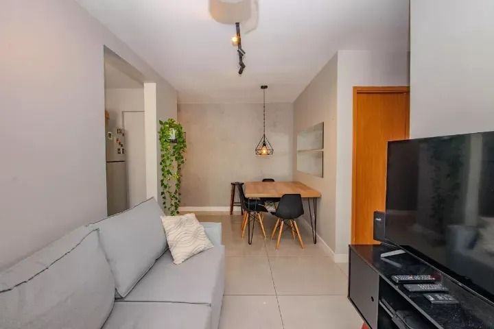 O imóvel conta com 2 dormitórios, living para dois ambientes bem definidos, sacada integrada com churrasqueira, cozinha funcional com móveis planejados de alto padrão, área de serviço e banheiro social. Encontra-se semimobiliado, incluindo ar-condicionado split de 12.000 BTUs no dormitório e demais itens, com possibilidade de negociação na modalidade porteira fechada.