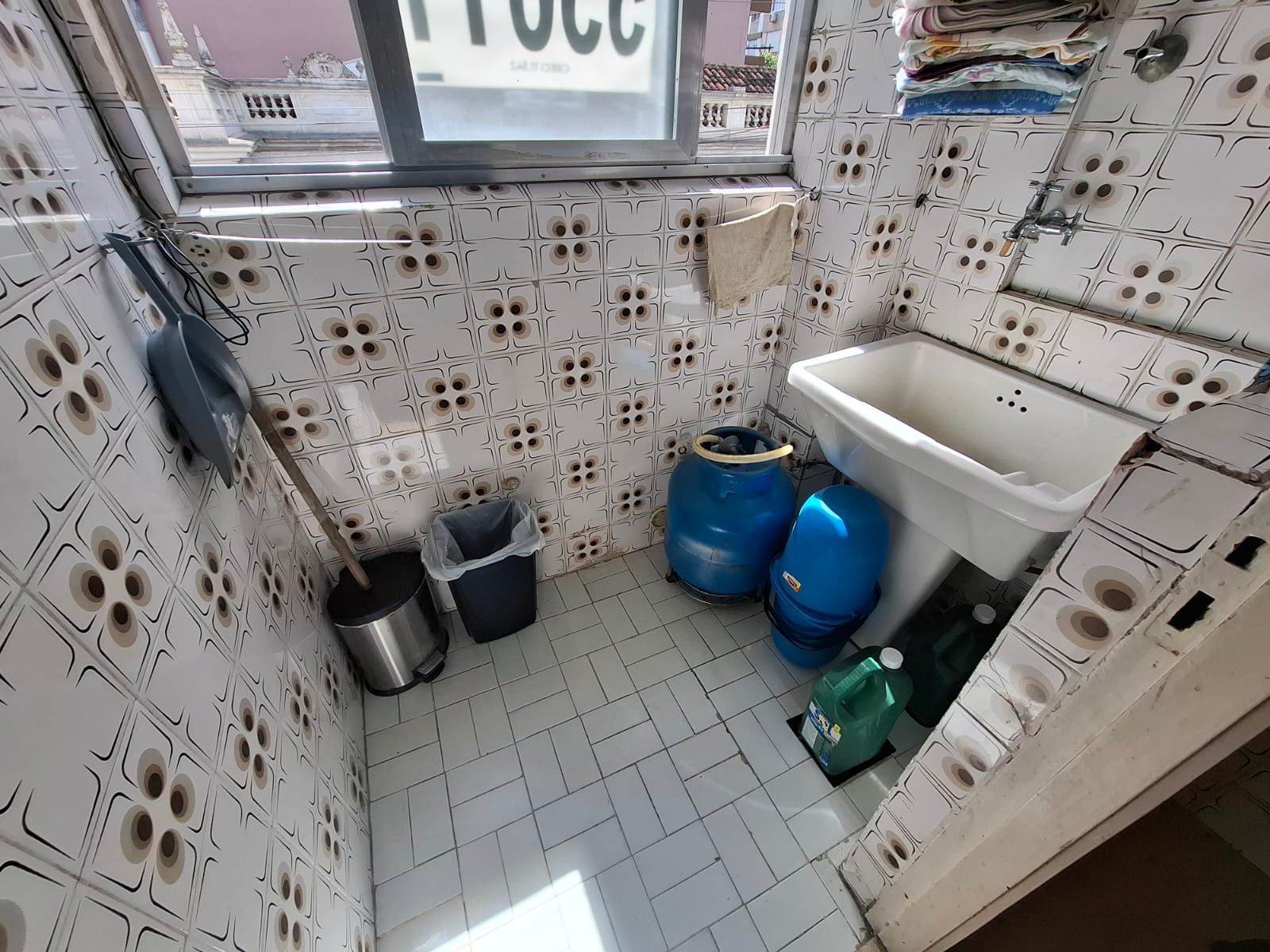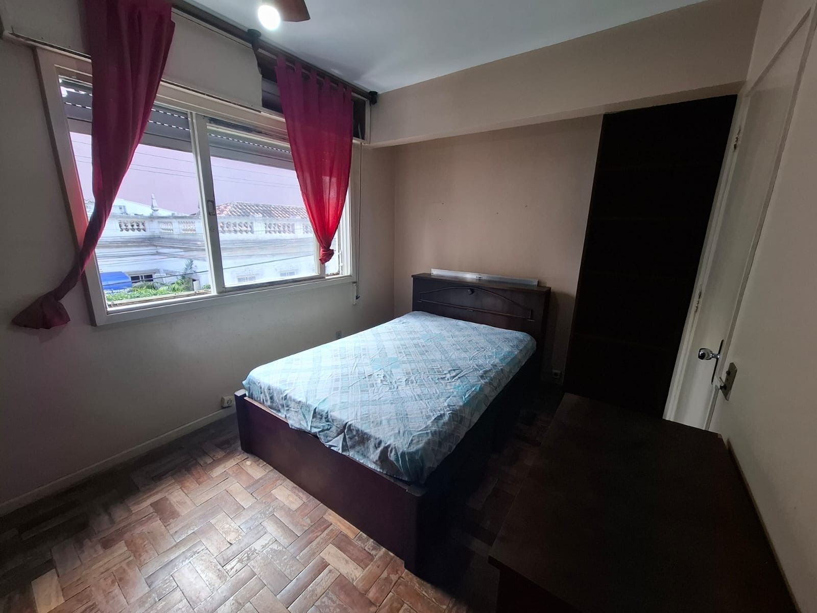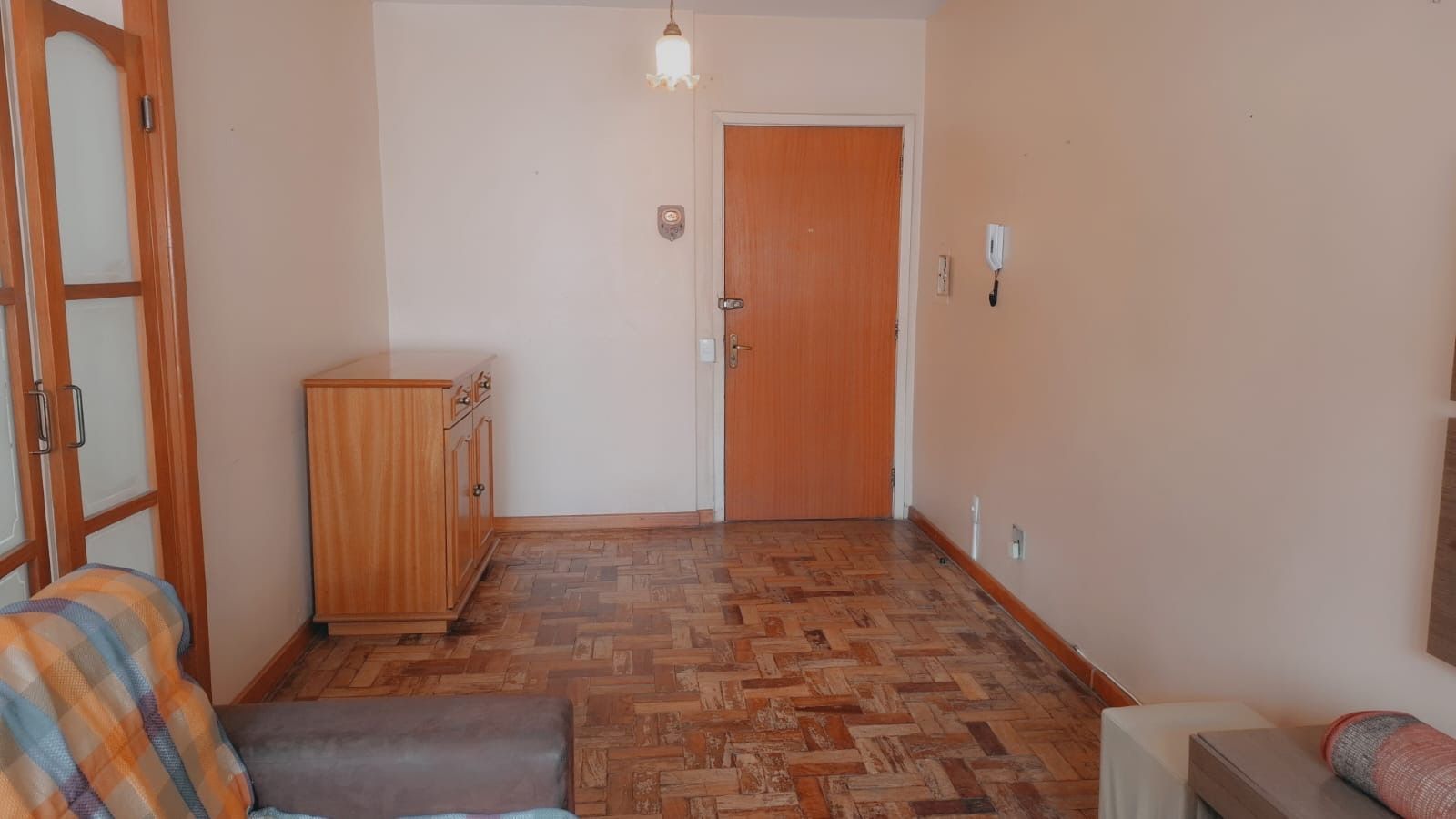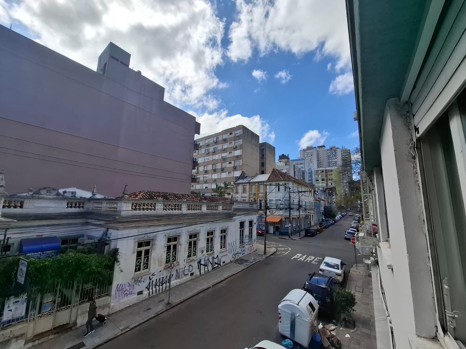 Apartamento de 1 quarto no centro de Porto Alegre/RS - Living amplo, banheiro social com ventilação direta, cozinha com área de serviço separada. Apartamento ensolarado e não emparedado, de frente. Edifício com baixo valor condominial e elevador.