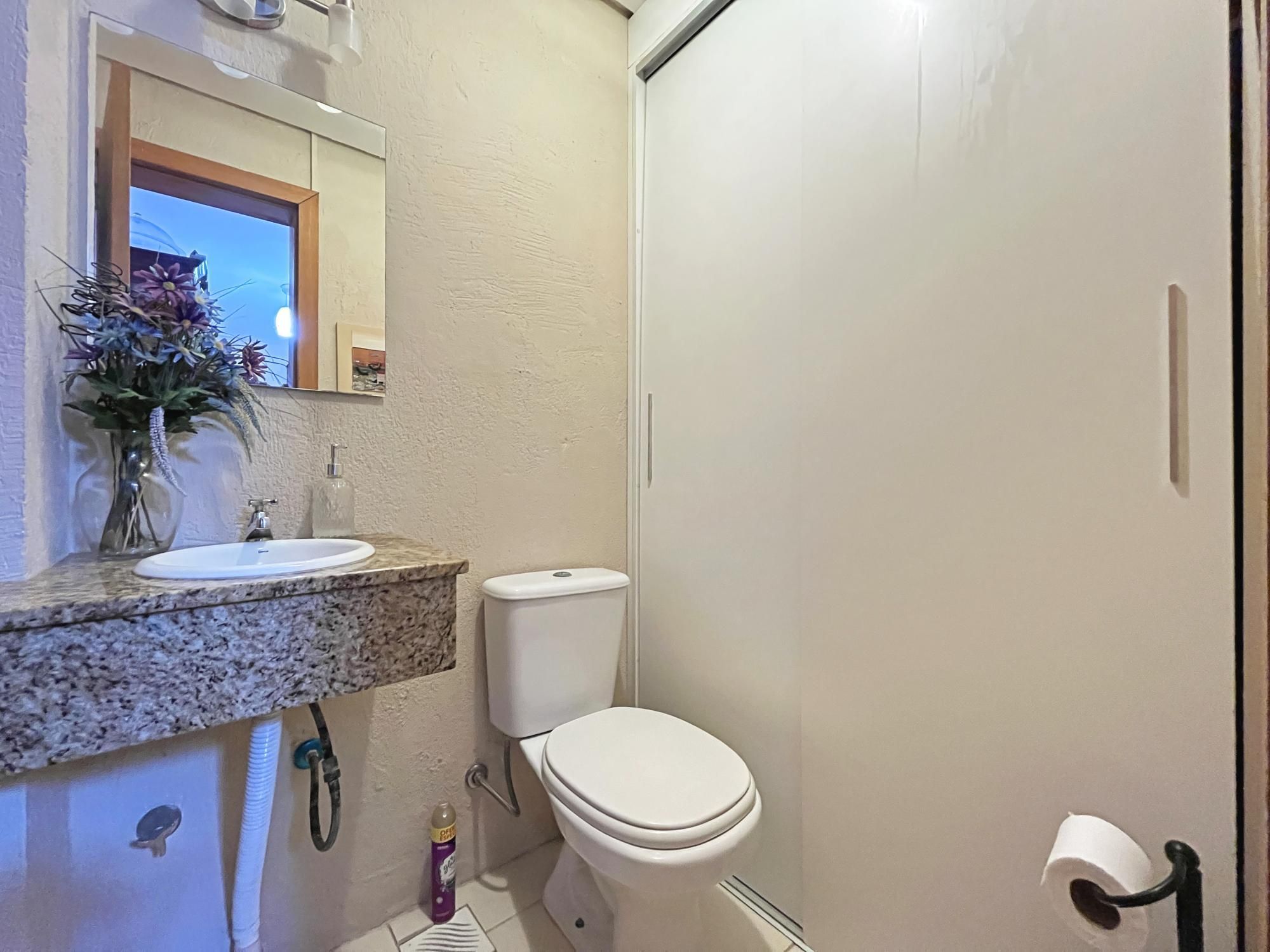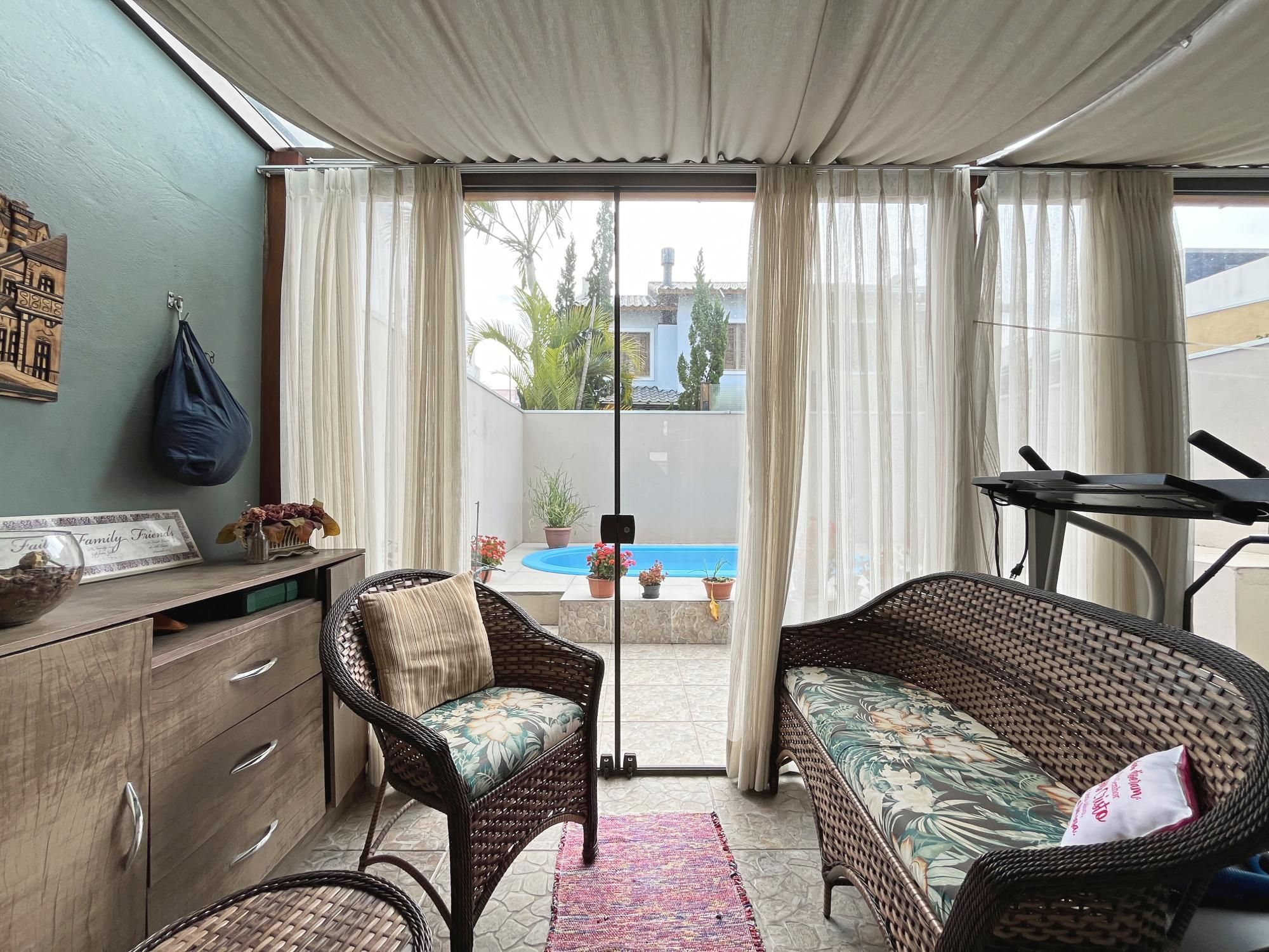 A propriedade também conta com uma área de serviço, lavabo, cozinha equipada, aquecimento a gás, sala de jantar e um convidativo hall de entrada, atualmente utilizado como sala de piano. Além disso, o destaque fica por conta da piscina, perfeita para desfrutar de momentos relaxantes em família e com amigos.