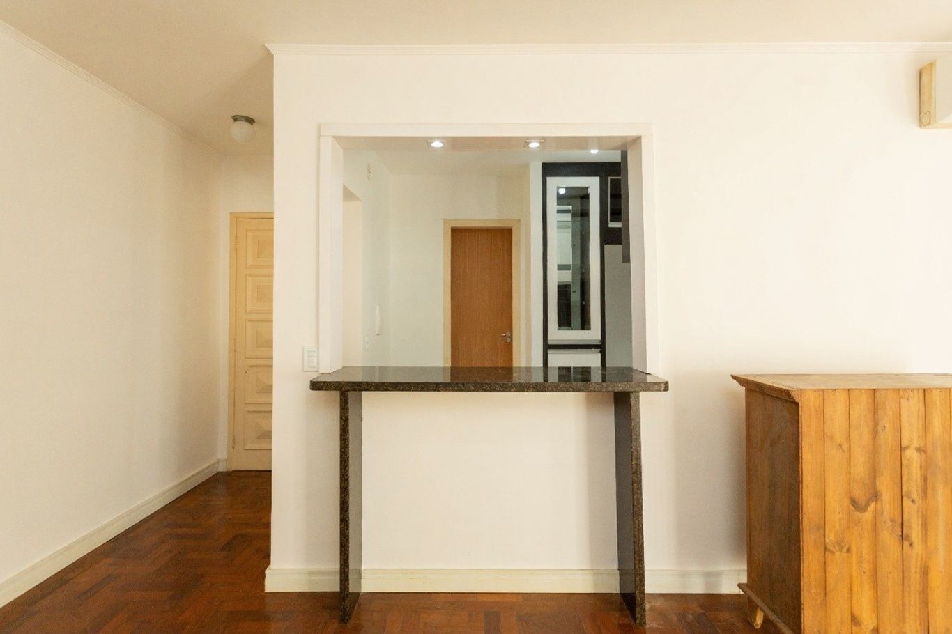 Apartamento muito bem localizado e pronto para morar, com 87m² de área privativa. Possui living para dois ambientes, cozinha com móveis sob medida, três quartos, banheiro social com banheira de hidromassagem e dependência de empregada transformada em área de serviço com banheiro auxiliar.