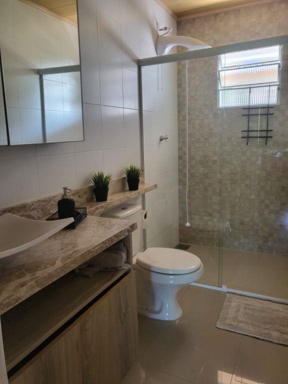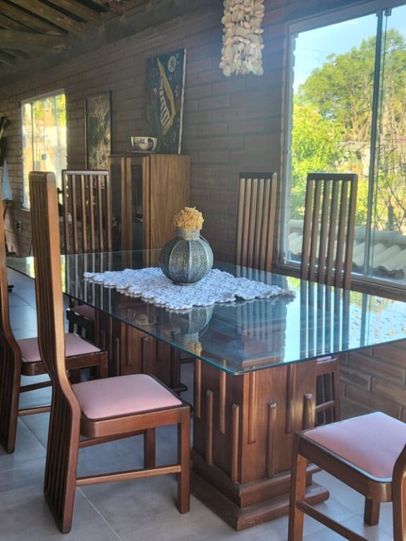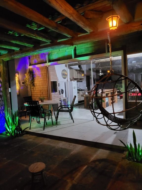 Porto Nobre vende: Casa de alvenaria em condomínio fechado, sendo a área social construída com pedra gres refilada. Casa possui uns 250 m2, distribuidos, em 3 quartos, sendo 2 suítes, uma das suites com closet, e uma banheira de hidromassagem para duas pessoas, com cromoterapia, aquecimento e air blower (efeito champanhe), a casa possui mais um banheiro social com chuveiro, e mais um lavabo, lavanderia, sala e cozinha integradas com churrasqueira, fogão a lenha, lareira e ilha de madeira, um quiosque, casa de lenha.