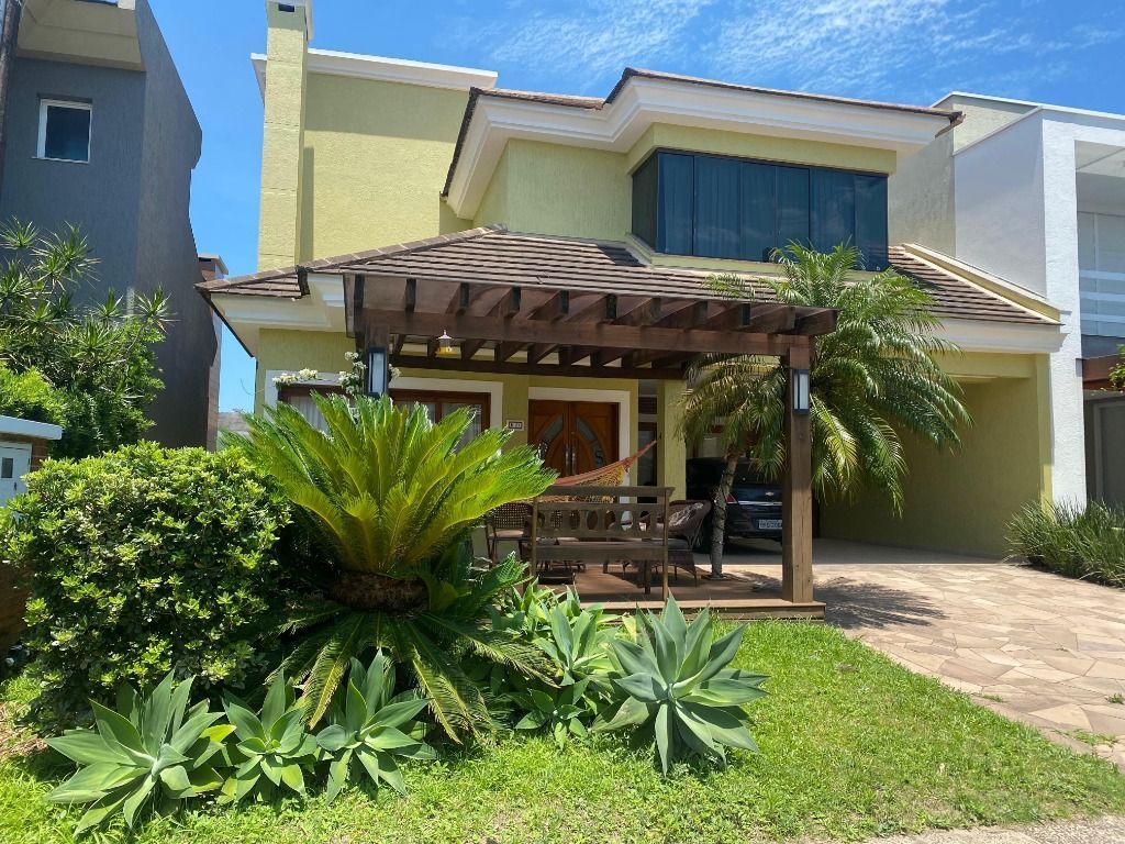 Casa de alvenaria construída em 2008, com 300 m² de área privativa, à venda mobiliada e com eletrodomésticos. Possui depósito, armários externos, forno a lenha, churrasqueira, duas vagas cobertas, portões laterais para pets e lavanderia ampla. Banheiros com água quente e chuveiro elétrico. Suíte master de 35 m² com armário sob medida, frigobar e TV. Sala com TV smart e lareira. Suítes com mesa auxiliar para home office e ar condicionado quente/frio. Suíte no térreo adaptada para pessoas com mobilidade reduzida, com barras de apoio e ventilador de teto.condomínio: Infra estrutura do condomínio(Piscina/Academia/Salão Festas): Salão de festas, lago artificial, piscina, quadras de tênis, futebol, bocha, academia, supermercado Maxx Ideal, Restaurante e Quiosque Bali, quadra de Beach Tênis, lago de pesca, pista de skate, piscina térmica *) O que tem próximo ao condomínio(mercado/farmácia/banco): Havan, Stock Center, Fórum